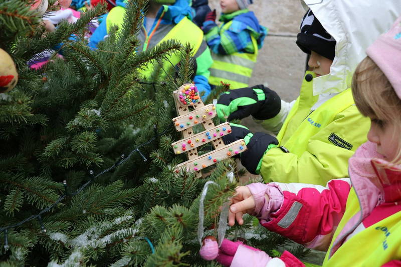 Da bo mesto kar se da pravljično, so dopoldan poskrbeli otroci iz Vrtca Antona Medveda Kamnik, Vrtca Sonček, Vrtca Peter Pan, Vrtca Zarja, Ciriusa Kamnik in podružnične šole Vranja peč, ki so okrasili smrečice na Šutni, medtem ko so zčenci OŠ Marija Vera o okrasili smrečice na parkirišču pri kavarni, kjer bo stala Pravljična hiška pod Malim gradom.