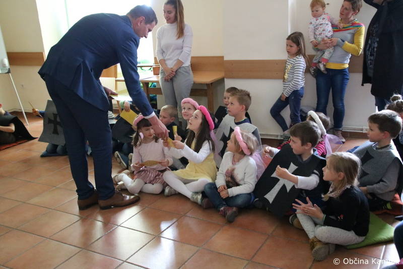 Včeraj popoldan je v prostorih samostana Mekinje potekalo odprtje razstave Ko kamniška zgodovina oživi, ki so jo skupaj z mentoricami pripravili otroci Zasebnega vrtca Sonček. Zbranim se je ob tej priložnosti pridružil tudi župan Matej Slapar skupaj z ravnateljico Zasebnega vrtca Sonček Dito Horvatiček in predsednikom Krajevne skupnosti Mekinje Nacetom Konciljo.
