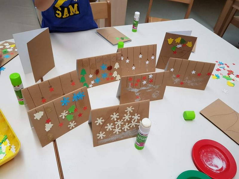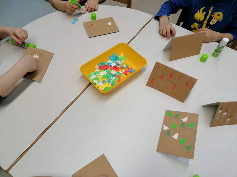 Otroci so tako prišli do ideje, da bi virus lahko pregnali s plesom, petjem, smehom in dobrimi deli. V ta namen smo strokovni delavci vrtca stopili skupaj in začeli s projektom izdelovanja voščilnic za Dom starejših občanov Kamnik.