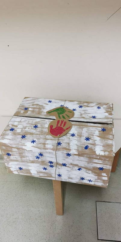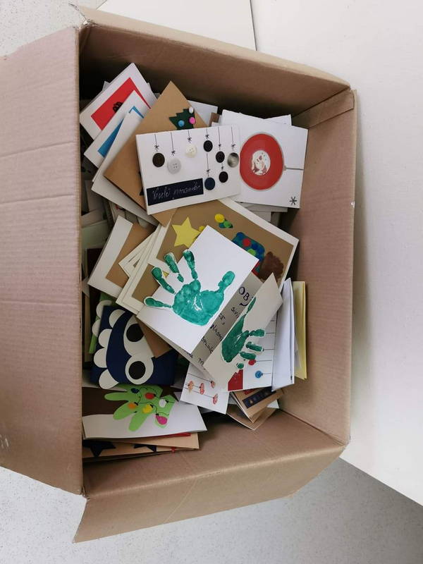 Otroci so z vso svojo radostjo izdelali voščilnice, strokovni delavci pa smo poskrbeli za lepe in spodbudne misli. Voščilnice so v paketu dostavili naši hišniki. Naš paket so za nekaj dni skrbno tudi izolirali, da ne bi prišlo do okužbe.