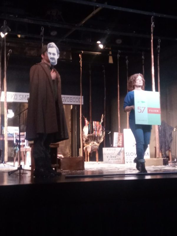 Največji vtis je predstava nedvomno pustila na koncu, ko je marsikdo med občinstvom mislil, da se po Kajuhovi smrti ne more nič več ključnega zgoditi, a sta se na odru prikazala Kajuh in Balantič s fotografijama preko obraza, obkrožena z najrazličnejšimi rekviziti, ki so jih na oder znosili ostali igralci. Tako smo ob ritmih rokerske uspešnice Praslovan lahko sledili najrazličnejšim protestniškim transparentom, maketam in logotipom blagovnih znamk, ki so propadle skupaj s propadom Jugoslavije, nekaj transparentov pa je bilo povezanih tudi z raznimi nedavnimi vstajami (Gotof je, covid farsa, boj sindikalistov itd.) in političnimi obrazi, med katerimi pa ni bilo prisotnih obrazov politikov, ki nastopajo na letošnjih volitvah.