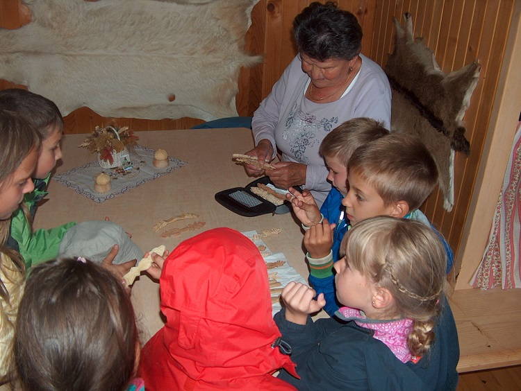 Rezkin stan pa je bil že nekoliko novejši. Nekdanja pastirica je povedala zgodbo o trniču, Debevčevi Zefi, pri kateri se je učila izdelave trničev in o 35 letih njenega pastirjevanja na Gojški planini. Rezka Mali še vedno naredi preko 300 trničev na leto. Otroci so bili navdušeni nad njihovo ličnostjo in vonjem.