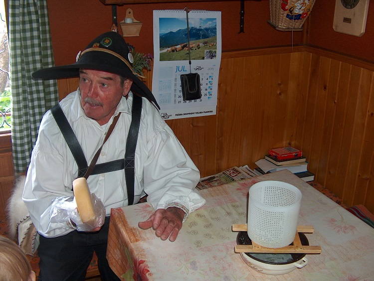 Peter Erjavšek je pokazal postopek izdelave sira iz sladkega mleka in tudi tistega iz kislega mleka. Iz slednjega pastirji naredijo kisli sir (skuto), ta pa se lahko predela tudi v tradicionalni velikoplaninski trdi sir-trnič. Za izdelavo lesene pisave (okraševanje trniča) Peter potrebuje 3 ure.