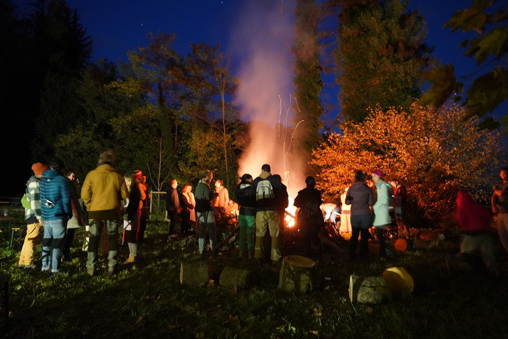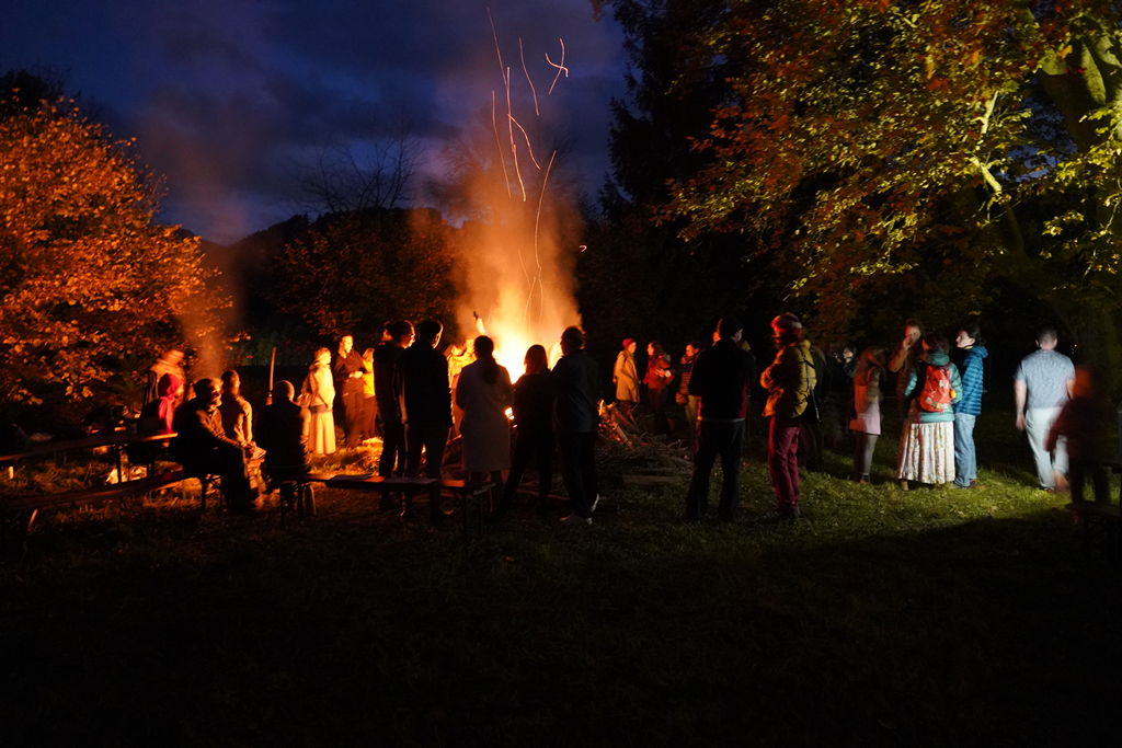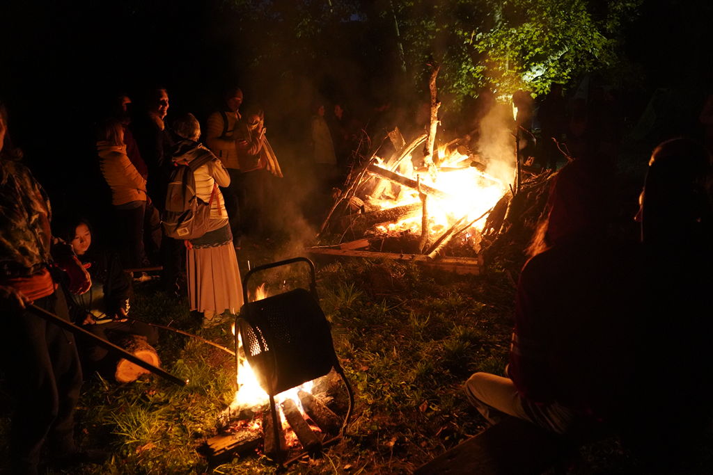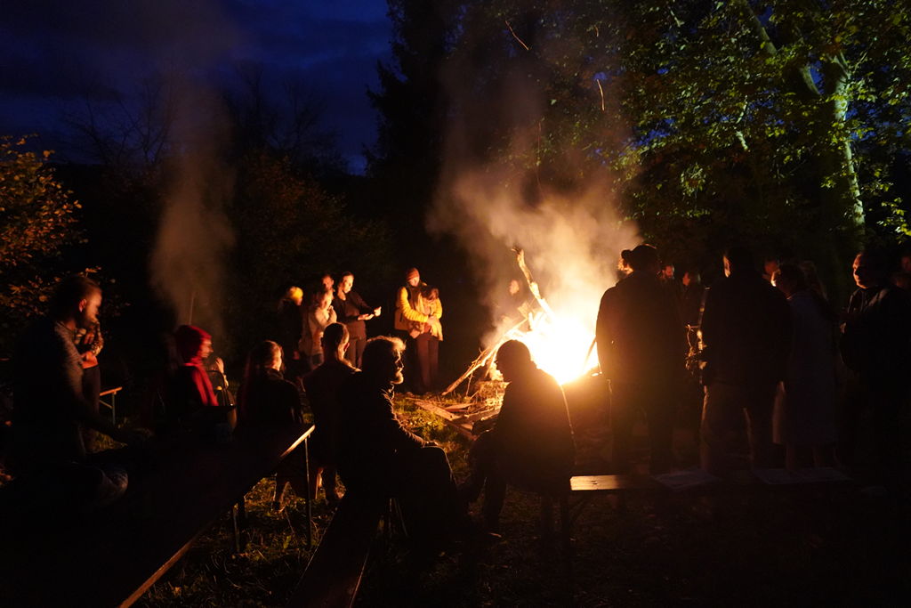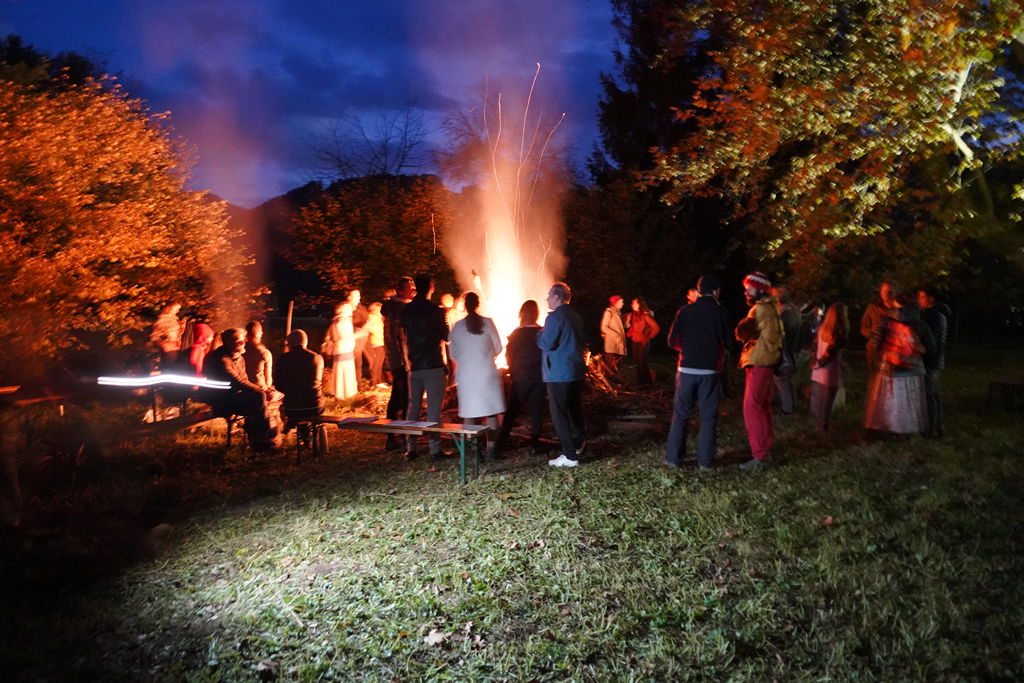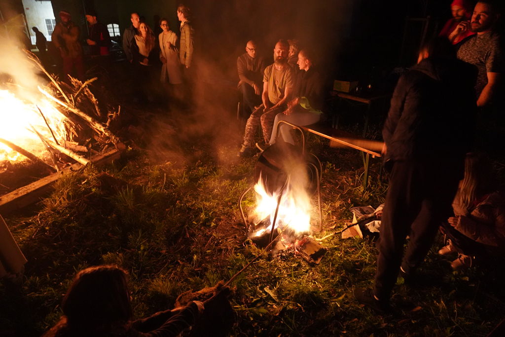 Dan se je, na srečo, zaključil z večerom. Hlad nas je z delavnic pregnal k ognju, ki je s svojo toploto privabil nemalo oboževalcev isker, dima, ter magične svetlobe, ki običajno spremlja plamene. S kitaro in nežnim žužnanjem, žuborenjem pogovorov, ki so se nadaljevali v toplini, ob napovedani peki kostanja in krompirja, se je večer nežno tkal dalje, morda v neslutene začetke nečesa novega…