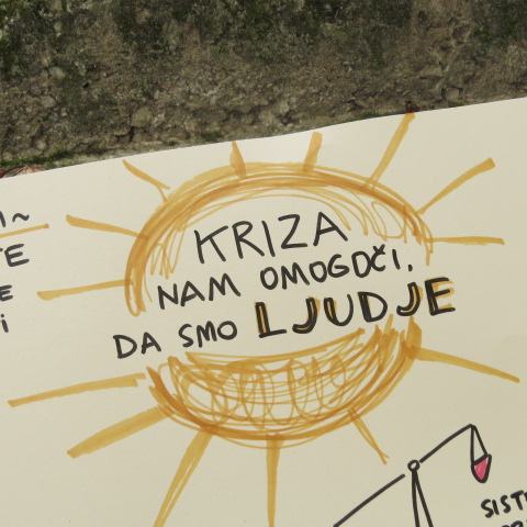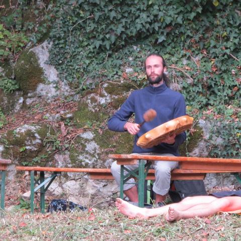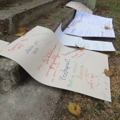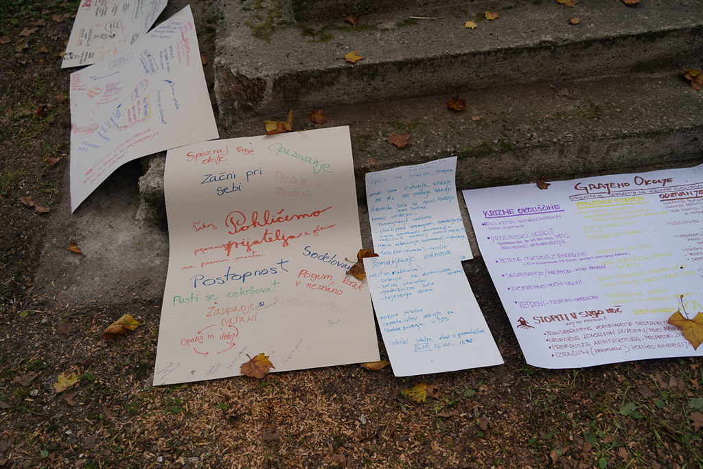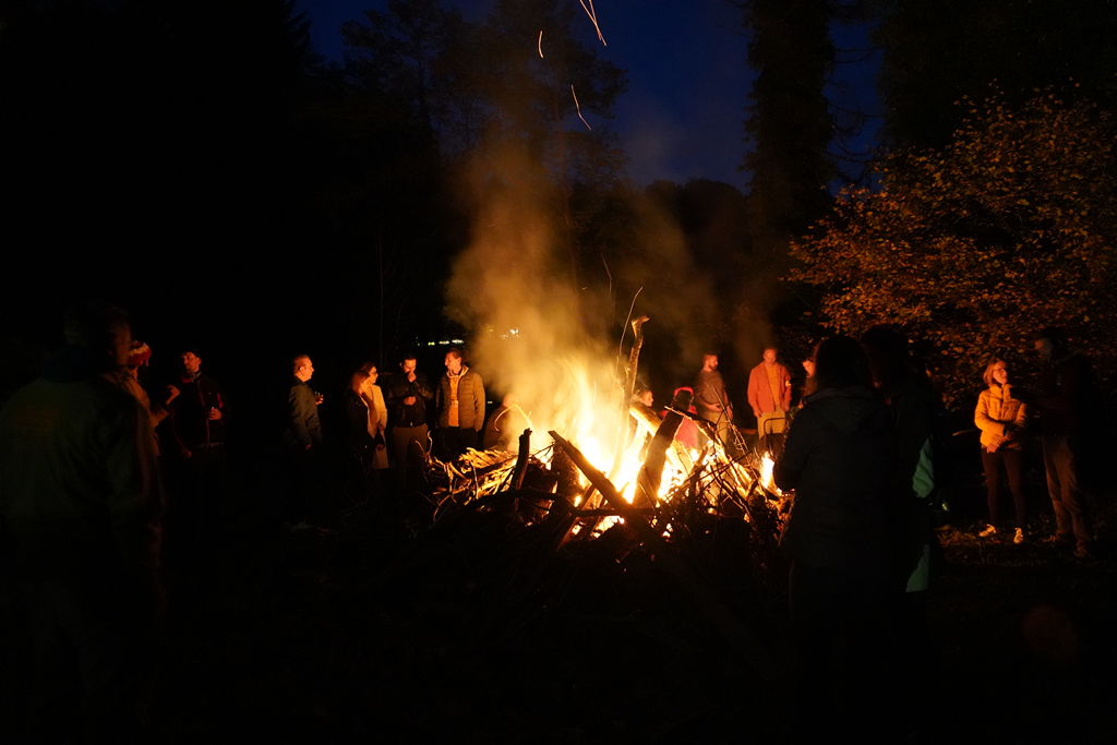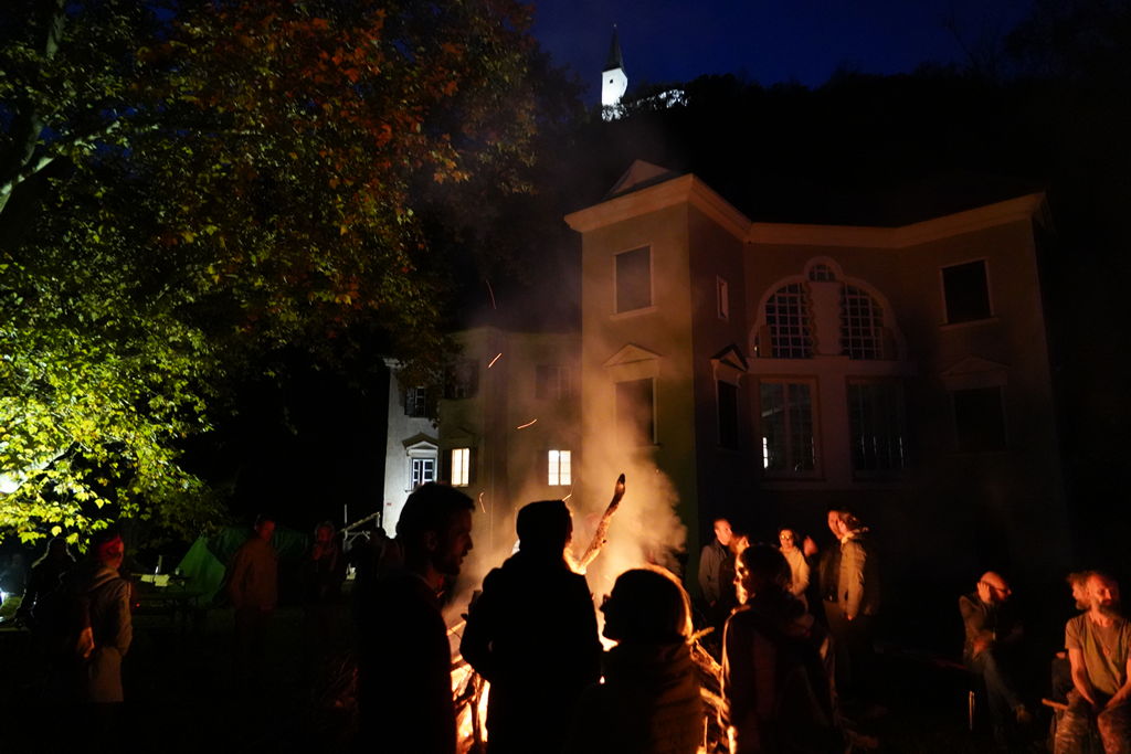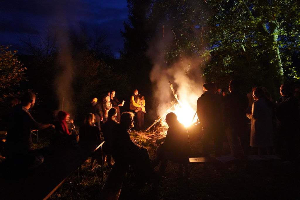 Dan se je, na srečo, zaključil z večerom. Hlad nas je z delavnic pregnal k ognju, ki je s svojo toploto privabil nemalo oboževalcev isker, dima, ter magične svetlobe, ki običajno spremlja plamene. S kitaro in nežnim žužnanjem, žuborenjem pogovorov, ki so se nadaljevali v toplini, ob napovedani peki kostanja in krompirja, se je večer nežno tkal dalje, morda v neslutene začetke nečesa novega…