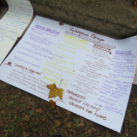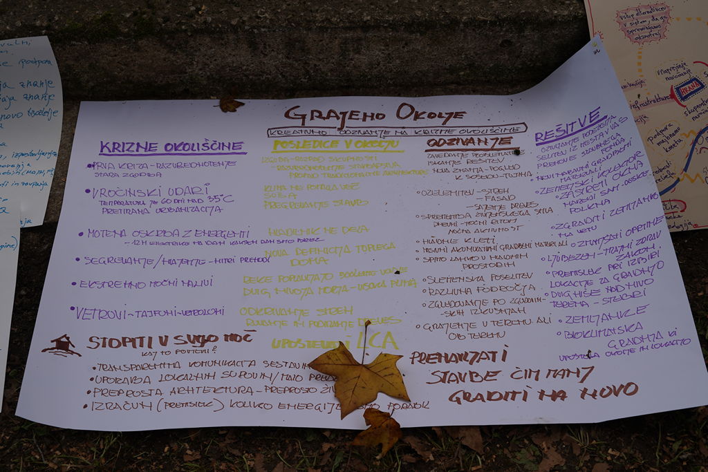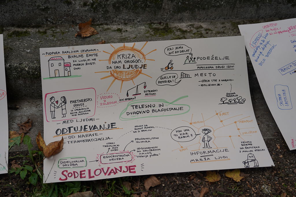 Finance in ekonomija, Izobraževanje in kultura, Orodje in tehnologija, Grajeno okolje) skozi pogovor v okviru okroglih miz vodili skupine udeležencev, nakar so kasneje tudi skupinsko načrtovali prihodnost področja, ki ga je vsaka skupina zase obravnavala. Vsaka od skupin je svoje delo, ugotovitve in zaključke na koncu predstavila občinstvu.