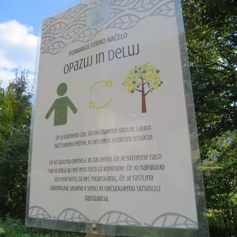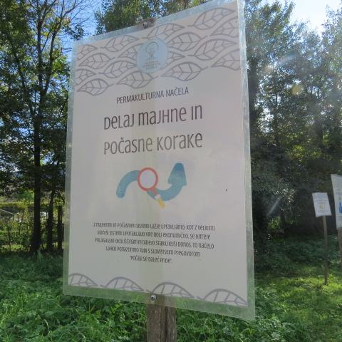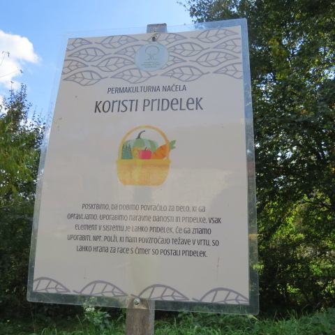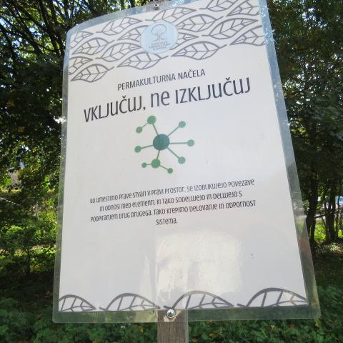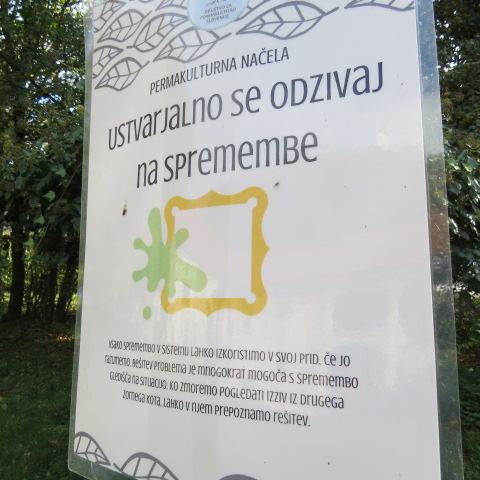 Najbolj pomembno, ključno načelo pa je kreativno, konstruktivno odzivanje na spremembe. Permakultura spremembe sprejme kot realnost, ki se ji ne moremo izogniti, in jih z kreativnostjo, prilagodljivostjo in razumevanjem naravnih vzorcev spremeni v priložnost za rast. Zato permakultura, kot povedo, ni le vrtnarjenje; je celovit načrtovalski pristop za oblikovanje prihodnosti, ki ni zgolj boj za samo preživetje. Je medsebojno povezana celota, usmerjena v blagostanje vseh živih bitij. To so lepo ponazorili plakati na panojih, razstavljenih na travnati površini, ki je vodila do galerije, skrite v enem mnogih kotičkov slikovitega posestva v obnovi.