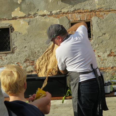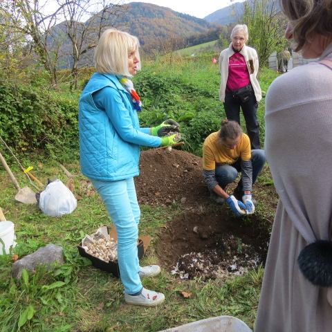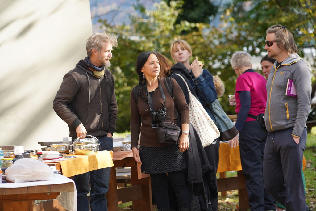 Po predstavitvi je sledilo skupno kosilo, ki so ga pripravili kar obiskovalci sami. Naročeno je namreč bilo, naj kosilo, namenjeno v medsebojno preizkušanje in izmenjavo receptov, vsak pripravi kar doma, in prinese v skupno dobro. Ne le glavne jedi, tudi sladice, čajne mešanice, sirupi…so bili dobrodošli in sprejeti v lačne »malhe«.
