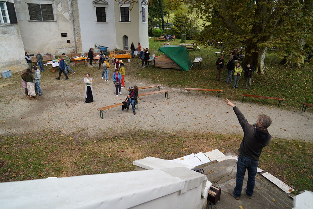 V zgodnjem popoldnevu smo se v soboto, 18. oktobra, popeljali na Vransko. Tam se je na območju stare graščine, posestva Podgrad v Praprečah, ležečega prav ob vznožju slikovitega hribčka s cerkvico, ki se je belila nad jesensko obarvanimi krošnjami dreves, odvil prvi festival permakulture pri nas. Organiziralo ga je Društvo za permakulturo Slovenije pod naslovom Permafest – kreativno odzivanje na krizne okoliščine.