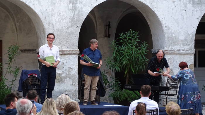 Pesmi sta interpretirala dramska igralca, Velenjčan Marko Mandić in nekdanji Kamničan Zvone Hribar. Recital je spremljal spremljal pianist Joži Šalej.