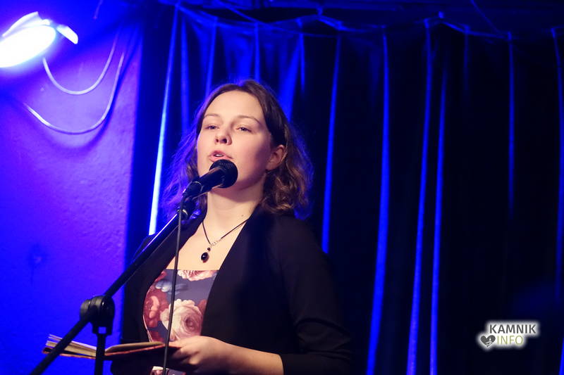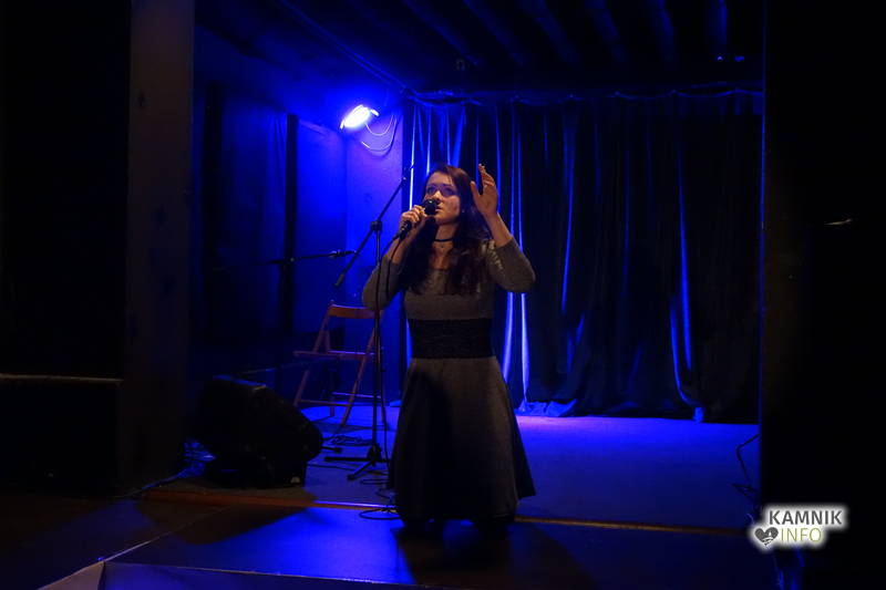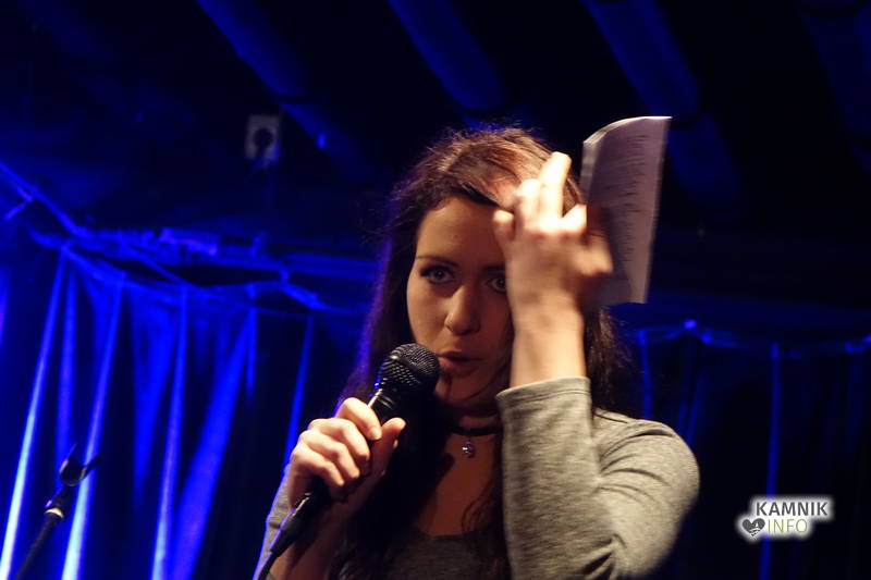 Po gromovitem uvodu indijansko razpoložene voditeljice večera, je poetično vzdušje s svojim glasbenim nastopom pričarala kamniška »talentka« Manca Berlec, ki je z avtorskimi skladbami v angleščini v nadaljevanju večera popestrila tudi premore med pesniškim mnogobojem.