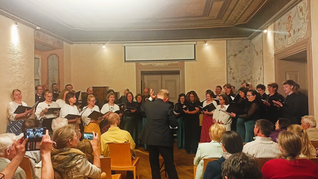 Prisluhnili smo izboru slovenskih domoljubnih in ljubezenskih skladb v izvedbi domačega zbora. Nato pa so nas gostje povabili na sprehod po estonskem zborovskem izročilu – od sakralnih skladb do melodij, ki so jih navdihnile folklorne praznične in delovne pesmi.