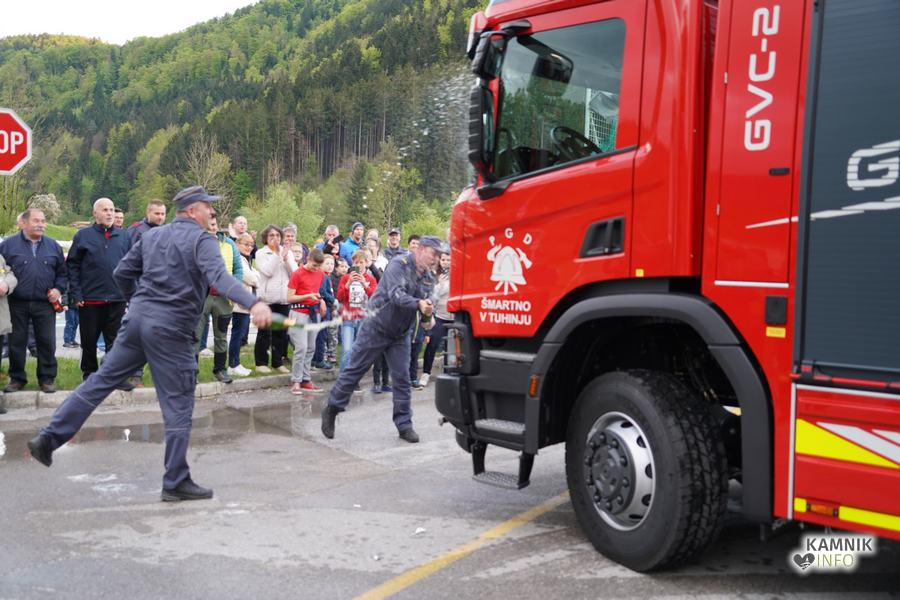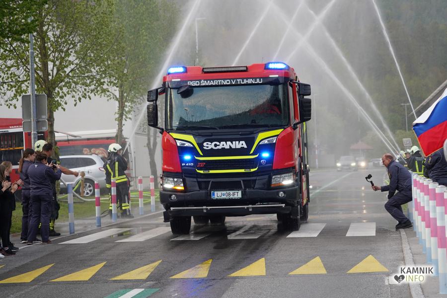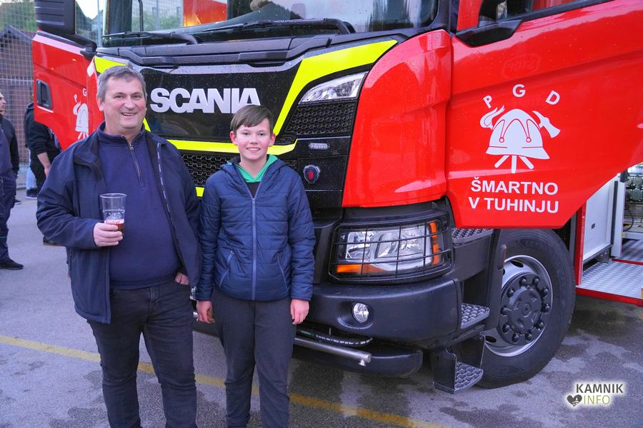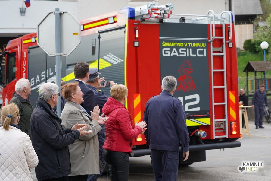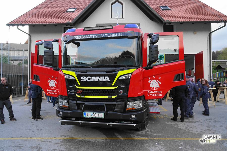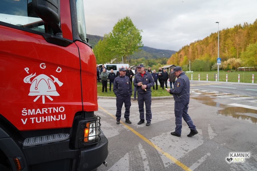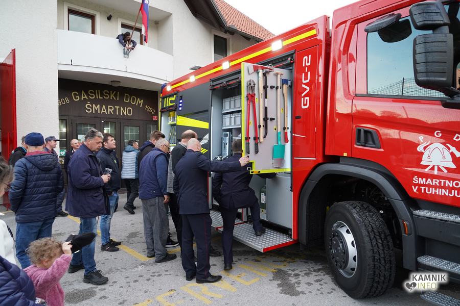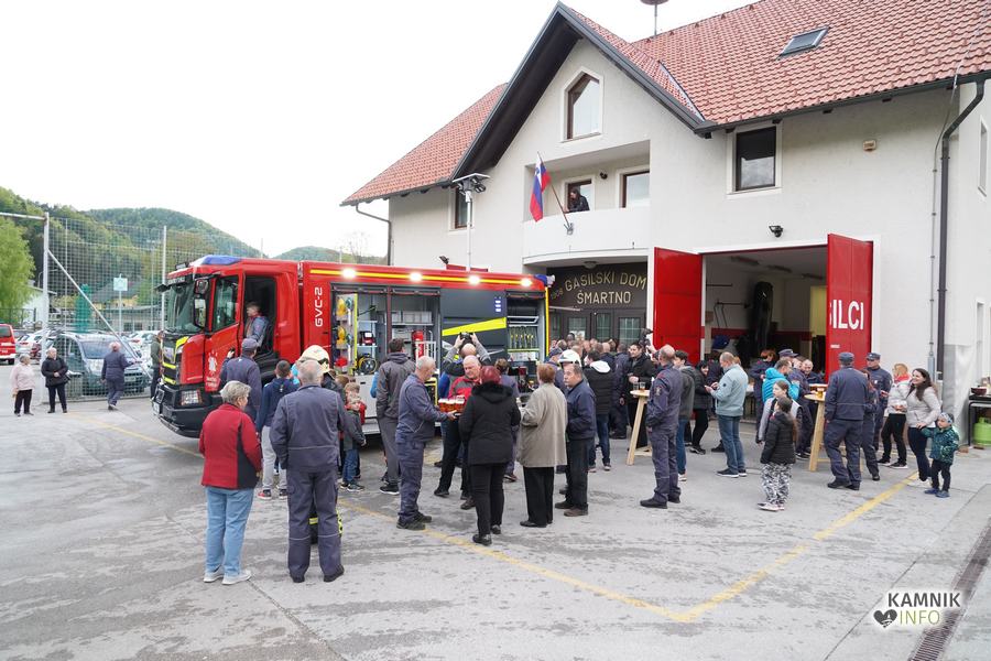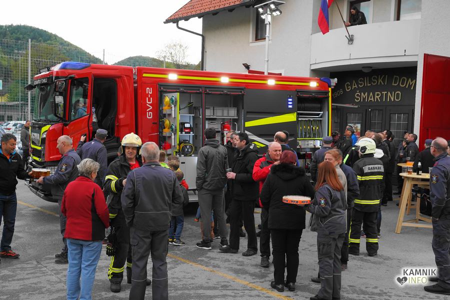 Včeraj zvečer je bilo pred gasilskim domom v Šmartnem v Tuhinju nadvse veselo. Kako bi tudi ne bilo, saj so tamkajšnje gasilke in gasilci, v družbi številnih krajanov in prijateljev, domala natanko pet desetletij let zatem, ko so dobili svoje prvo gasilsko vozilo, z nestrpnim veseljem pričakali prihod svoje najnovejše pridobitve, povsem nove, zmogljive in moderno opremljene gasilske cisterne GVC-2.