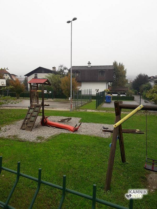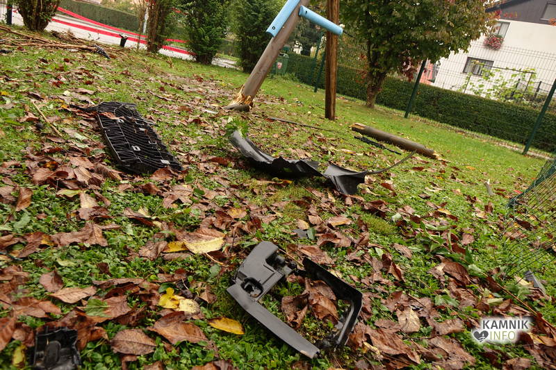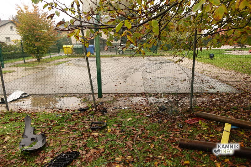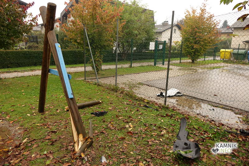 Danes ponoči, okrog 3. ure zjutraj, je na Jenkovi ulici v Kamniku, ki je mimogrede tudi šolska pot na kateri velja omejitev hitrosti 30 km/h, prišlo do prometne nesreče v kateri je 20-letni voznik osebnega vozila prebil ograjo otroškega igrišča ter z vozilom podrl in uničil tudi nekaj igral.