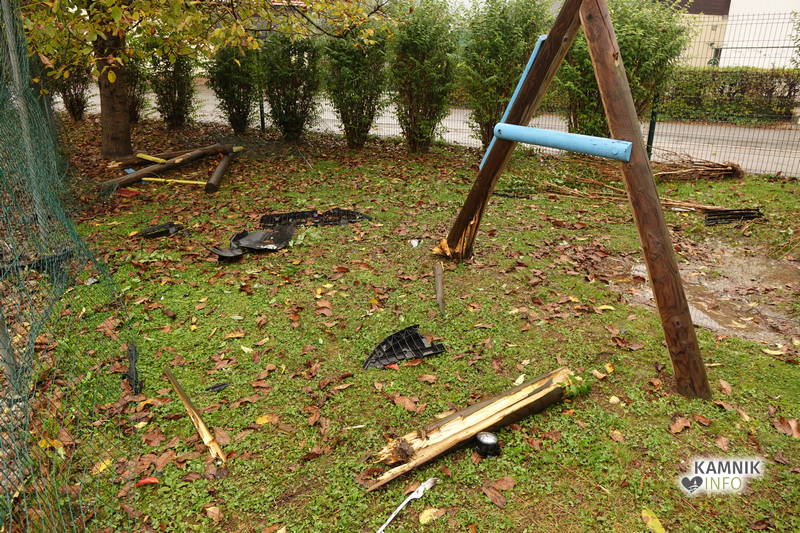 S fotografij je razvidno zgolj del razdejanja, ki ga je povzročil pijani 20-letnik, saj je bilo otroško igrišče v času fotografiranja povečini že pospravljeno, zaprto in opremljeno z obvestilom, da je zaradi izjemnih razmer do nadaljnjega zaprto.