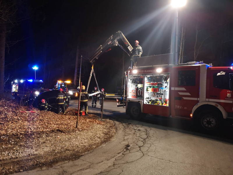 Na kraju dogodka so posredovali tudi gasilci PGD Kamnik, ki so vozilo z dvigalom dvignili nazaj na cesto.