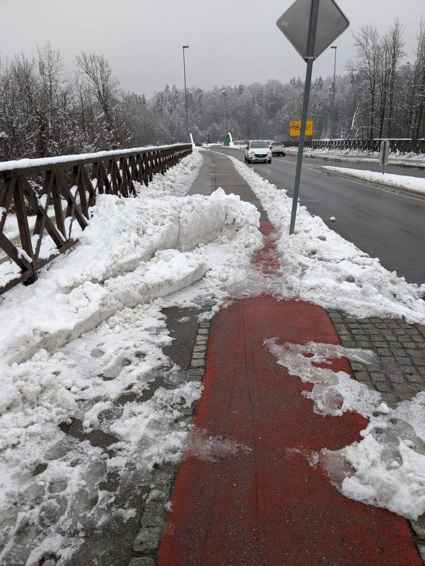 Vseeno pa moram tudi pohvaliti, da so nekatere poti super urejene, kot npr. pot ob Bistrici. Upam, da se ob naslednjem snegu enako poskrbi tudi za vse glavne poti.
