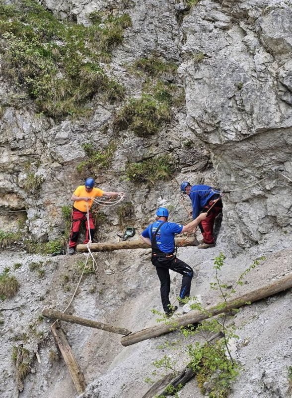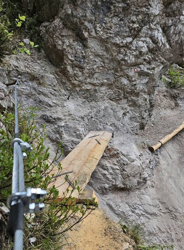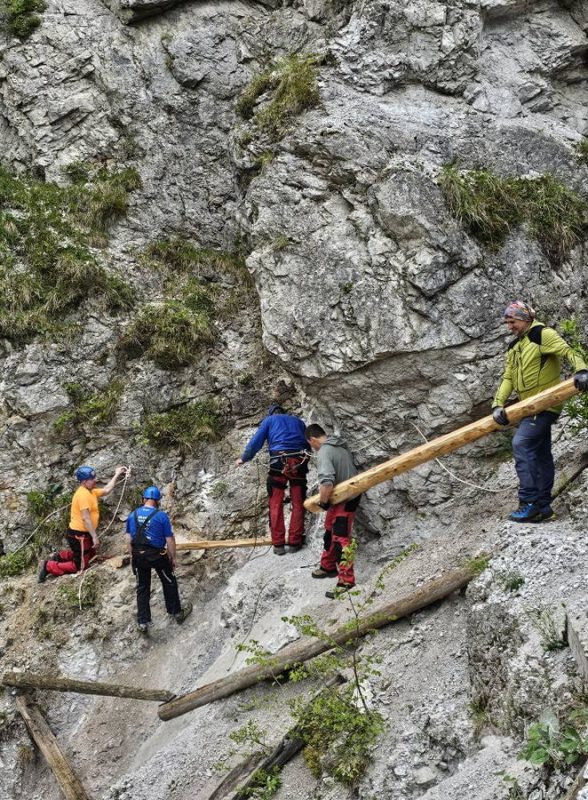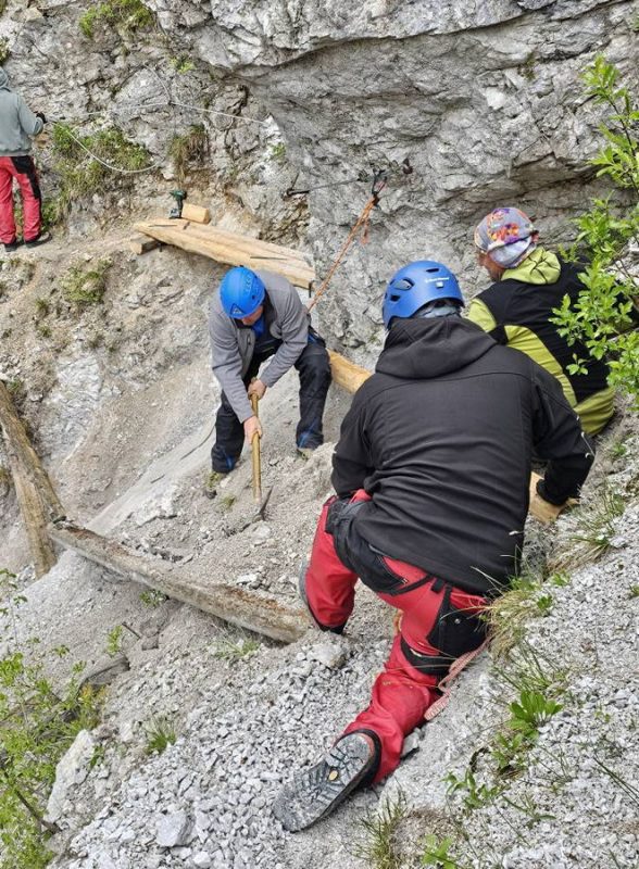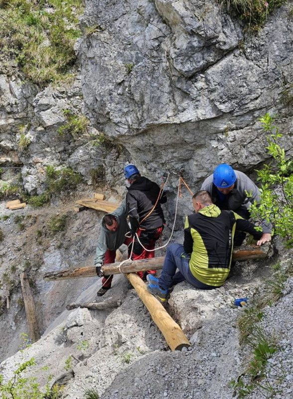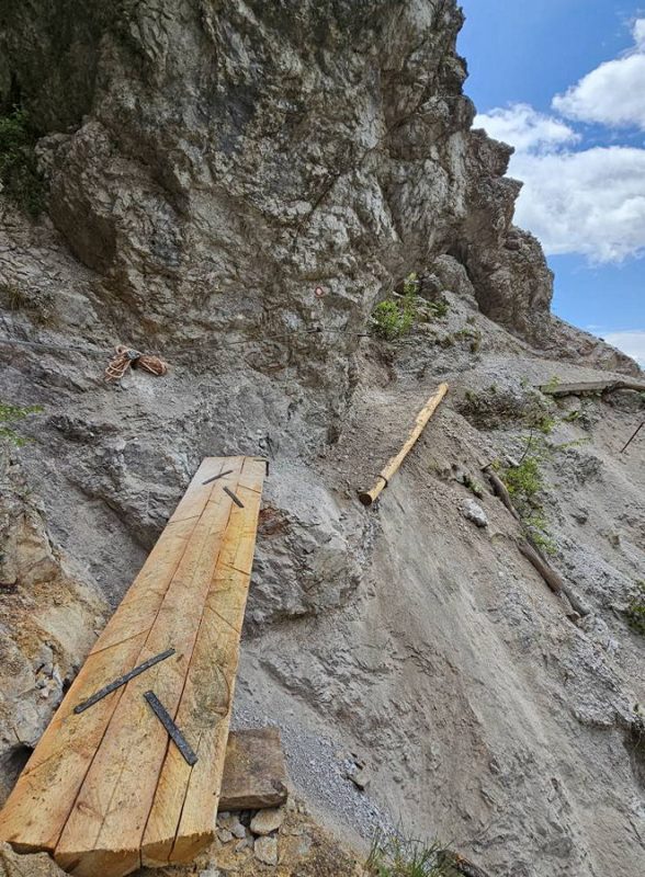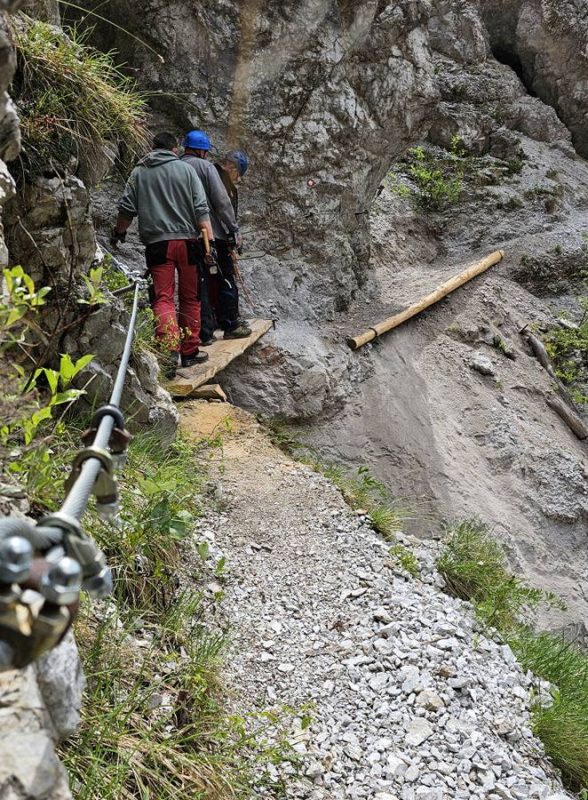 Porušeni odsek poti so izkušeni kamniški markacisti, ki po svojih najboljših močeh skrbijo, da so planinske poti v njihovem upravljanju kar najbolje urejene in varne, uredili s tehnično in fizično kar precej zahtevno premostitvijo, saj so pot mestoma podprli in utrdili, na najbolj kritičnem delu pa postavili manjši most, ki je, za večjo varnost pohodnikov, opremljen tudi z varovalno jeklenico.