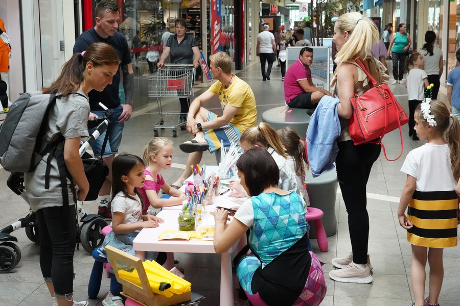 Kopico prav imenitnih risb čebelic si lahko do nadaljnjega ogledate na stenah ob tekočih stopnicah kamniške Supernove, v kateri je bilo v soboto živahno kot v pravem čebeljem panju.