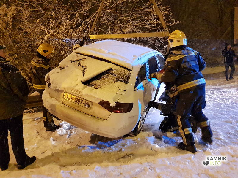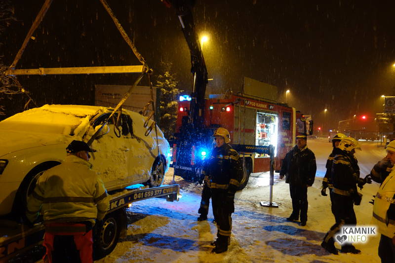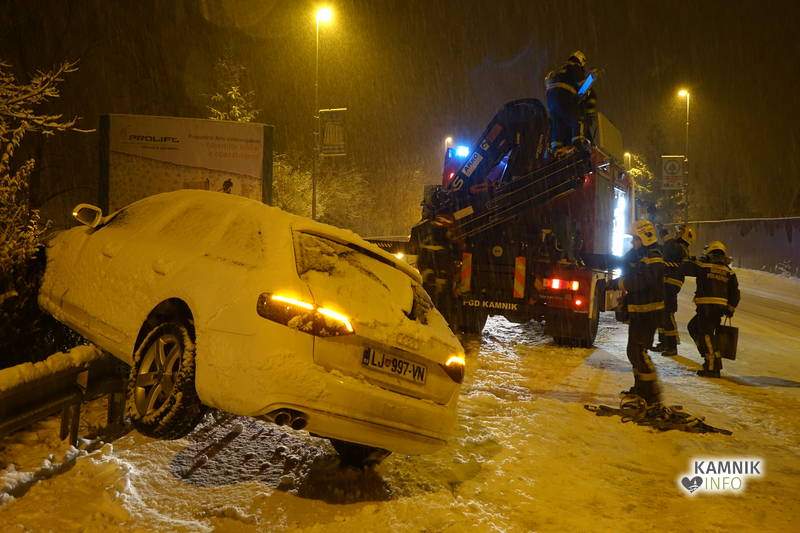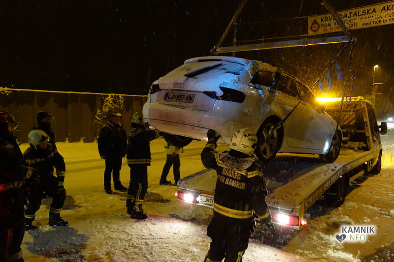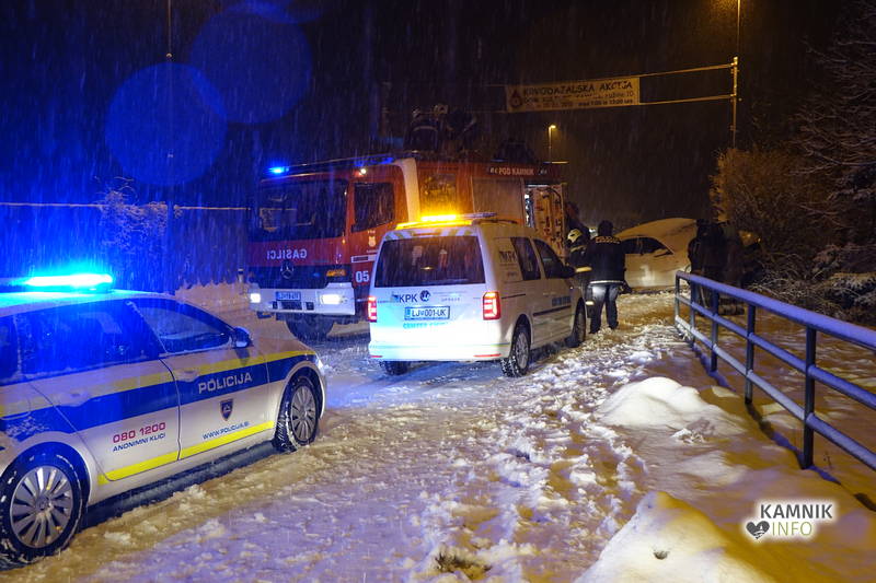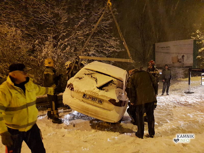 Kamniški gasilci so bili ob 21:40 zaprošeni za pomoč pri odpravljanju posledic prometne nesreče, do katere je prišlo na malo pred križiščem pri kamniški gimnaziji. V nesrečo je bilo vpleteno osebno vozilo, ki ga je, bržkone zaradi voznim razmeram neprilagojene hitrosti, najprej zavrtelo, nato pa odneslo na odbojno ograjo, na kateri je vozilo obtičalo.