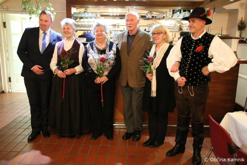 V prostorih Društva upokojencev Kamnik je včeraj popoldne potekala slovesna podelitev priznanj in cvetja kamniškim diamantnim, bisernim in zlatim parom, ki sta jih jubilantskim parom podelila podžupan Igor Žavbi in predsednik Društva upokojencev Kamnik Vinko Polak.
