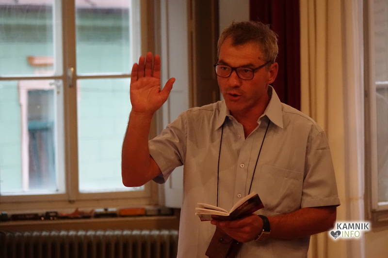 Kot ta bi ne bilo dovolj, da si kamniški ustvarjalec drzne v naše prelepo mesto pod Alpami, v katerega »številna« razstavišča sodijo kvečjemu podobe kozolcev, srnic, rož in planin, kot kake ne bodi jih treba migrante uvažati smeti, je kristalno bistre jezerske vode ob odprtju s tajfunskim nagovorom razburkal še slavnostni govornik, programski vodja festivala Kamfest Goran Završnik, ki je izpod svojega cilindra v bistre razstavne vode napeljal nekohezijsko kanalizacijo cinično-sarkastičnih verbalnih odplak, ki so zmedenim obiskovalcem priložnostnega akvarija zamašile škrge in zameglile vid, da so se jezerske vode nad mestom zbistrile šele ob pomoči najpomembnejših artefaktov vsakega spodobnega odprtja razstave, nekaj kozarcev vina, ki so šokiranim očem povrnili običajno bistrost in ostrino.