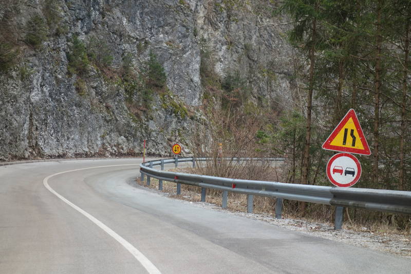 Na cesti je postavljena začasna prometna opozorilna signalizacija z odstopom prednosti, tako da je pas na strani brežine razbremenjen obtežbe avtomobilov, cesta in promet na njen nista ogrožena.