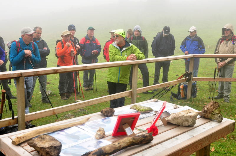 Pohodniki so se po jutranjem pozdravu podali skozi vas Zg. Tuhinj proti planini Ravni, kjer je po dobri uri strme hoje pri križu in vpisni knjižici na Prevali potekal kratek program. Najprej je vse prisotne pozdravil predsednik KS Tuhinj Dejan Bajde, za njim pa je ga. Ivi Bajde na kratko vendar zelo slikovito opisala življenjske poti in dosežke obeh alpinistov, sledil je pozdrav pozdrav g. Ažmana na koncu pa so še vsi pohodniki skupaj zapeli narodno slovensko pesem Rastejo v strmi gori planike tri ob kateri se je vsak potopil v svoje misli.