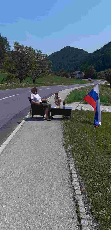 Prvo osvežitev jim je na Lokah pripravil Franc Šuštar. Pot so nadaljevali skozi tuhinjsko dolino, kjer sta pohodnike pozdravila Cestanarjeva Jaka in Anica. Na Ločici pri Vranskem pa jih je pričakal Alešev prijatelj Jernej in jim pripravil malico.