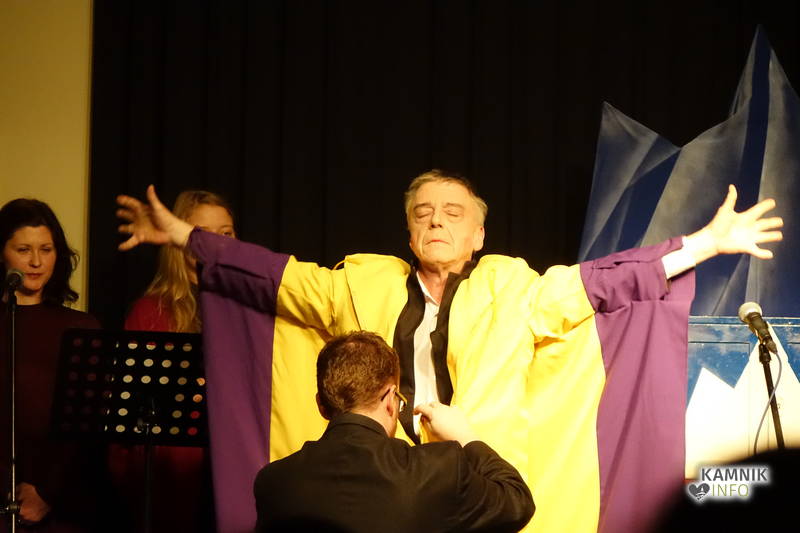 Ritual je bil podkrepljen s pisano kostumografijo in sočno pridigo, kot ste najbrž utegnili razbrati že iz molitvenega besedila, če ste seveda zbrali dovolj poguma, da ste premagali strah pred večnim pogubljenjem zavoljo prebiranja krivoverskih molitev, pa verski skrajneži, ki so sinoči svoje rituale izvajali tudi v kamniškem hramu kulture, verjamejo v obstoj domišljijske rajske slovenske dežele in svobodnega slovenskega jezika, oz. kot zapoveduje njihova veroizpoved: