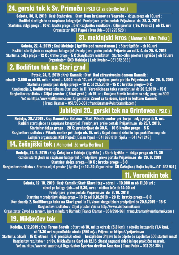 Po prireditvi, ki jo je povezovala Mira Papež, so se zbrani tekači in tekačice ter organizatorji prireditev še nekoliko podružili, obenem pa si z zanimanjem ogledali tudi razpored tekem Tekaškega pokala Občine Kamnik, ki bo potekal tudi v letu 2019.
