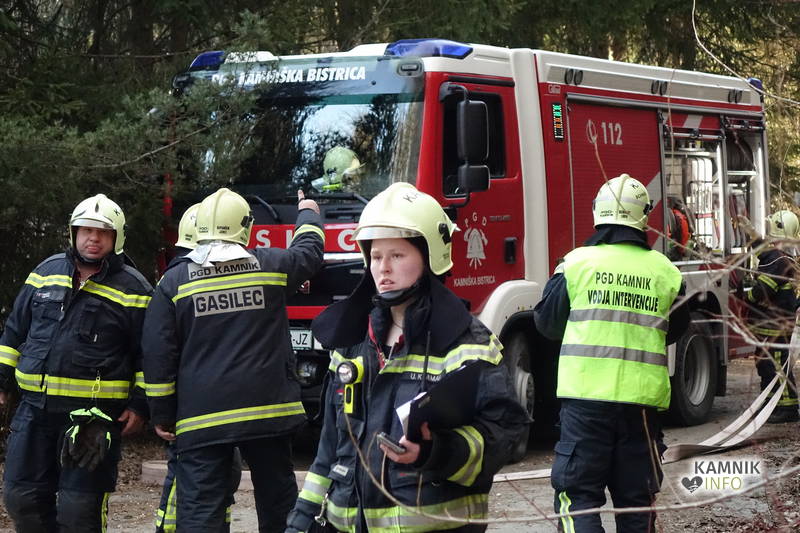 Zaradi nedostopnega hidrantnega omrežja v bližini gorečega objekta, so bila takoj po prihodu PGD Kamnik na mesto intervencije, aktivirana še društva PGD Kamniška Bistrica, Nevlje Duplica in Tunjice.«