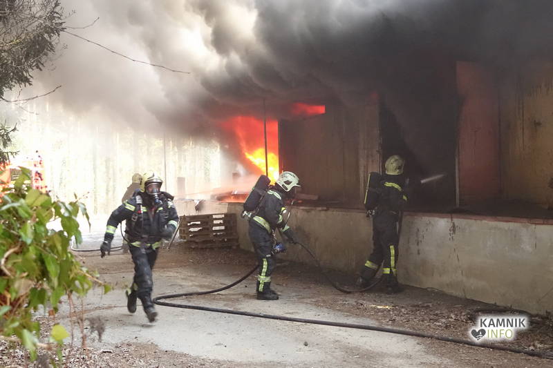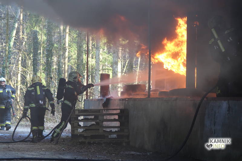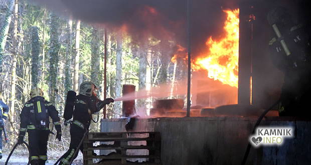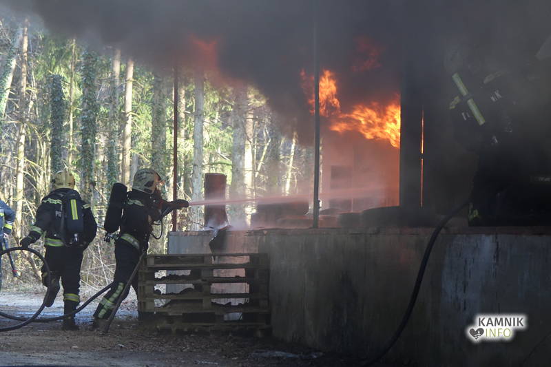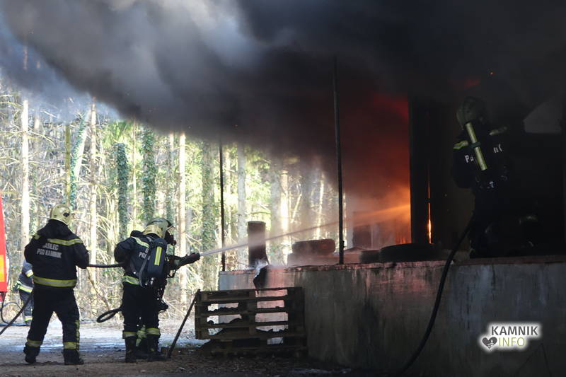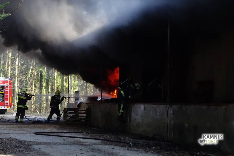 S požarom skladišča na območju nekdanje smodnišnice se je včeraj spopadlo kar 57 gasilk in gasilcev iz petih kamniških prostovoljnih gasilskih društev. Požar so uspešno pogasili, z vzroki požara, pa se ukvarjajo policisti.