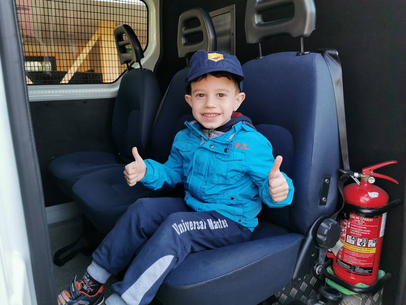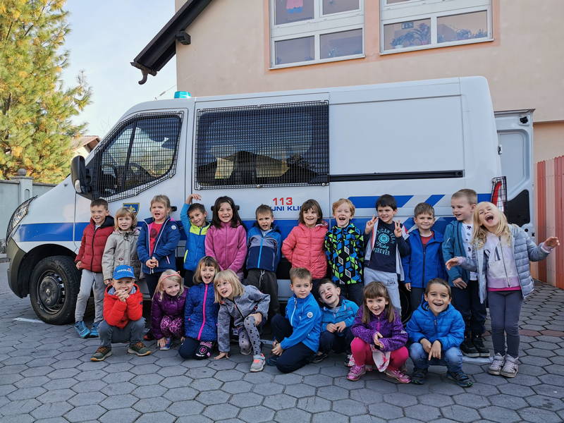 Otrokom je bil zelo zanimiv tudi policijski kombi. Od blizu so si ogledali njegovo notranjost, nato pa prižgali signalizacijske luči in sireno.