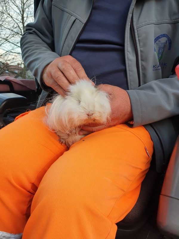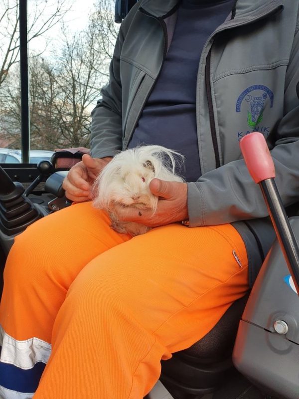Delavci Komunalnega podjetja Kamnik so danes zjutraj ob cesti iz Novega trga proti Palovčam našli prikupnega dolgodlakega morskega prašička (ali mogoče zajčka?), ki se je radovedno podal v širni svet.