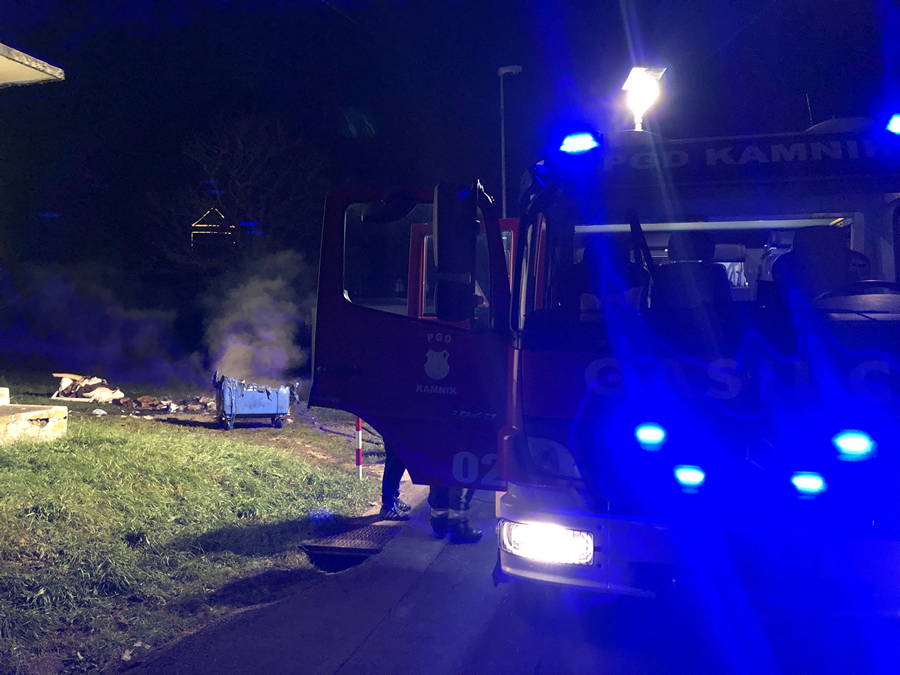 Nekoliko kasneje, par minut pred 17. uro, so morali gasilci odhiteti na Streliško ulico, saj so prejeli obvestilo, da pri transformatorski postaji gori zabojnik za smeti. Gasilci PGD Kamnik so zabojnik za papir sicer pogasili, vendar je bil le-ta v požaru povsem uničen, medtem ko so preostala zabojnika za steklo in embalažo, še pred njihovim prihodom prisebno umaknili očividci.