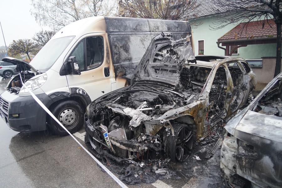 V nočnem požaru so na parkirišču pekarne na Ljubljanski cesti v Kamniku ognjeni zublji uničili štiri vozila, in sicer tri osebne avtomobile in kombinirano vozilo.