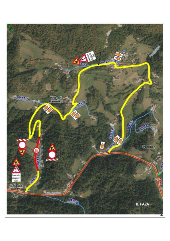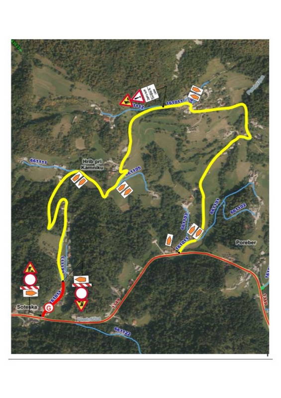 V času popolne zapore bo potekal obvoz v smeri Poreber-Hrib-Soteska in obratno.