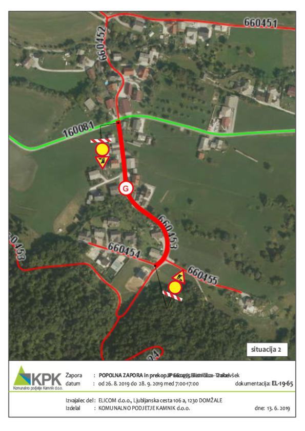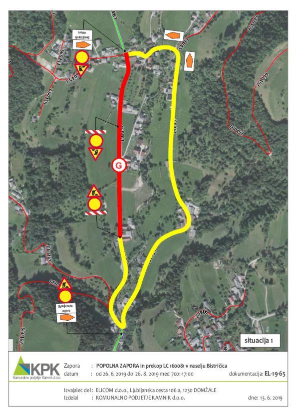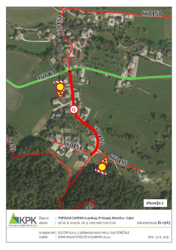 Obveščamo vas, da bo zaradi gradnje kanalizacije v času od 26. 6. 2019 do 26. 8. 2019 popolna zapora lokalne ceste LC 160081 ZGORNJE STRANJE-ZAGORICA-KREGARJEVO-BISTRIČICA-ZAKAL-LENART NA REBRI ( v naselju Bistričica ), obvoz bo urejen po javni poti skozi »Janežičevo vas« ter v času od 26. 8. 2019 do 28. 9. 2019 popolna zapora JP 660453 Bistričica – Zakal ( v naselju Bistričica ) in JP 660455 Bistričica – Trobevšek, obvoz ni možen, zato mora izvajalec del občasno stanovalcem naselja Zakal in dela Bistričice omogočiti dostop do stanovanjskih hiš.