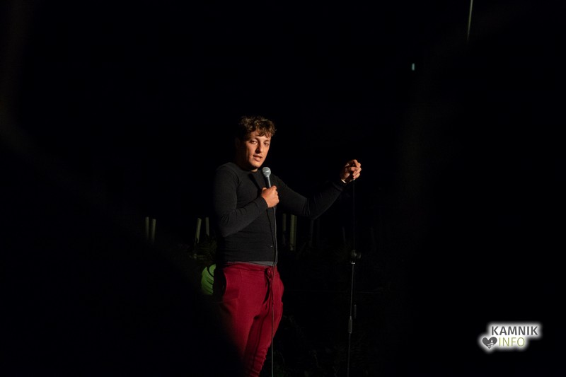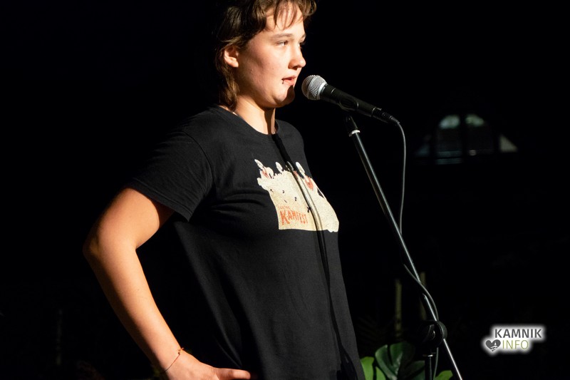 Nekaj minut po deveti uri je Katja Šulc pod mestni oder privabila ljubitelje elektronske glasbe s svojim albumom Kamlisajlan, dobršen del sinočnjih obiskovalcev Kamfesta, pa je okupiral dvorišče pri Korobaču, kjer se je, že drugo leto zapored, odvil zloglasni Večer črnega humorja.