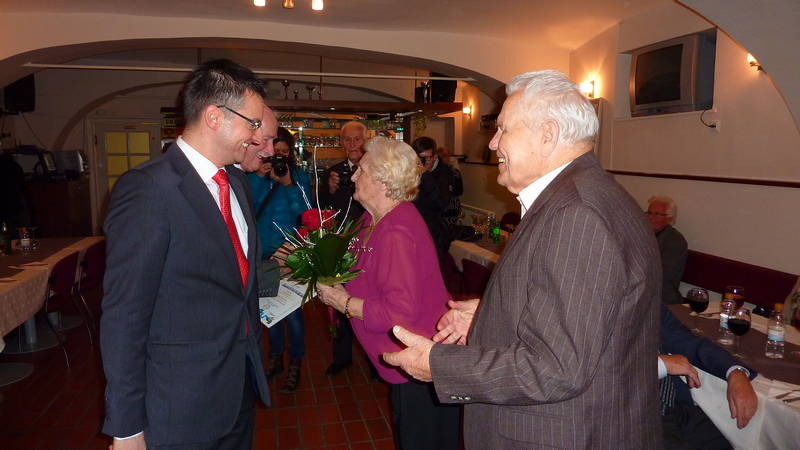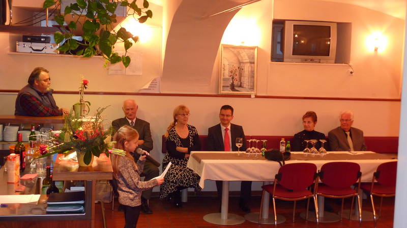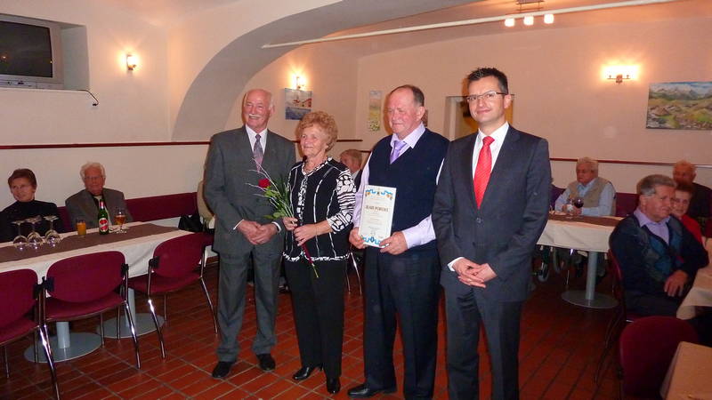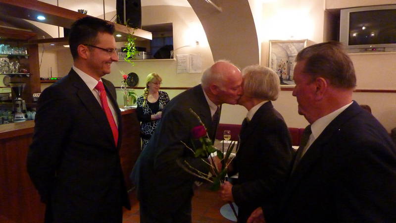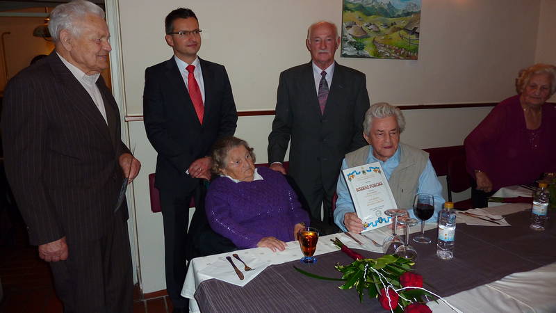 Župan je vsem zakoncem iskreno čestital in dejal, da so nam lahko za vzgled, saj so znali potrpeti in držati skupaj tudi v časih, ki so znali biti tudi precej slabši od današnjih, ko ne znamo potrpeti in vse preveč radi jamramo, čeprav imamo še vedno vsega polno rit. No, župan sicer ni uporabil ravno teh besed, saj se je izrazil mnogo lepše in bolj vljudno, so ga pa stari zakonci prav dobro razumeli kaj je hotel reči, četudi je bil v nagovoru precej kratek, in sicer z dobro utemeljenim razlogom, saj je dejal, da je še nekoliko premlad, da bi jim lahko kakorkoli solil pamet, za kar so ga prisotni nagradili s prešernim smehom in aplavzom.