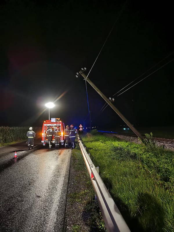 Nad cesto Kamnik – Mengeš se je zaradi močnega vetra nevarno nagnil železniški telekomunikacijski drog, za katerega pa so, po obvestilu gasilcev, poskrbeli železničarji.
