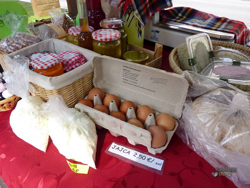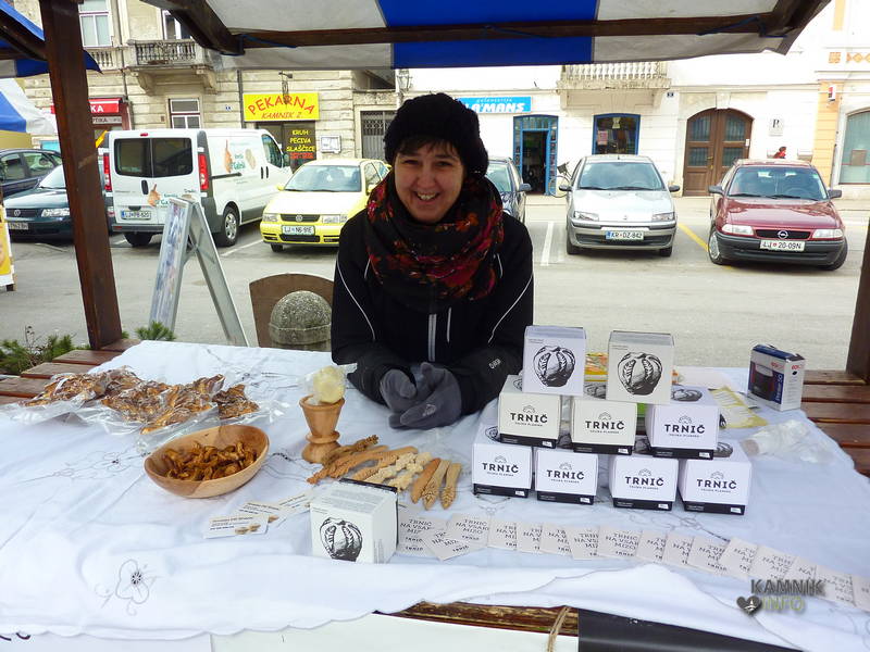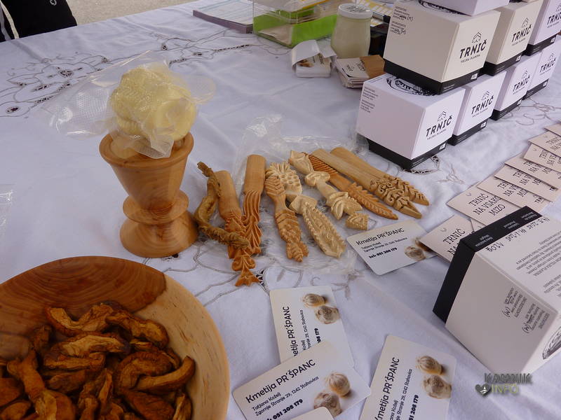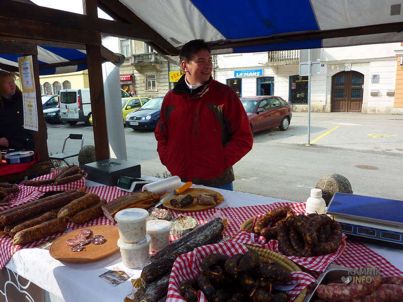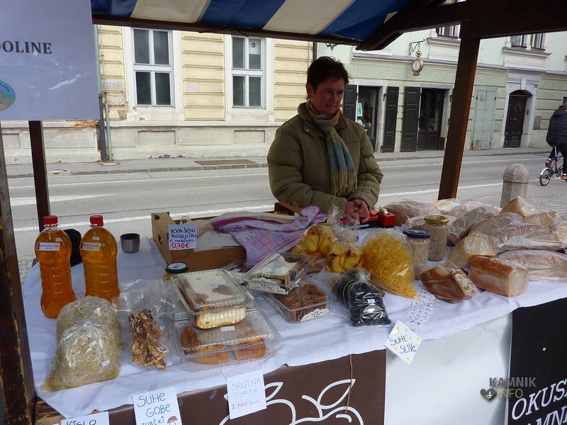 Postnemu času primerna je bila tudi današnja ponudba dobrot na kamniški tržnici domačih dobrot, ki že kar nekaj časa na Glavnem trgu poteka vsako zadnjo soboto v mesecu, kar pa še ne pomeni, da bi človek lahko s tržnice prišel lačen. Najrazličnejših dobrot je bilo še vedno v izobilju, le ponudba lokalno pridelanega sadja in zelenjave je še nekoliko omejena in se ne more primerjati z uvoženo ponudbo trgovskih centrov, ki pa je včasih precej dvomljive kakovosti. Februar v naših kraji vendarle še ni čas jagod in paradižnika, je pa kljub temu še vedno moč dobiti lepa jabolka, zadnje domače korenje, krompir, brstični ohrovt, radičm motovilec in podobno obstojnejšo in trajnejšo zelenjavo, da domačih jajčk, skute in sira ter pečenih, vloženih, sušenih in sladkih dobrot sploh ne omenjamo, velikoplaninskemu trniču, ki se je prav dobro prijel,pa se zaenkrat tudi ni treba bati, da bo šel v pozabo, saj jih, razen na češnjiški kmetiji Pr’ Gabršk, delajo tudi Pr’ Španc v Stranjah.