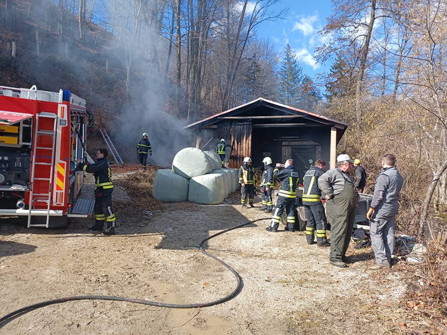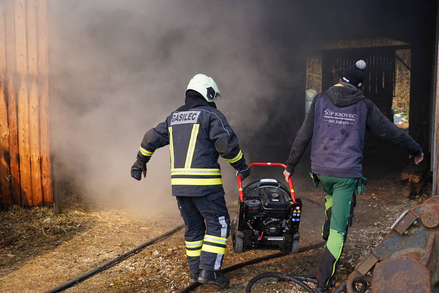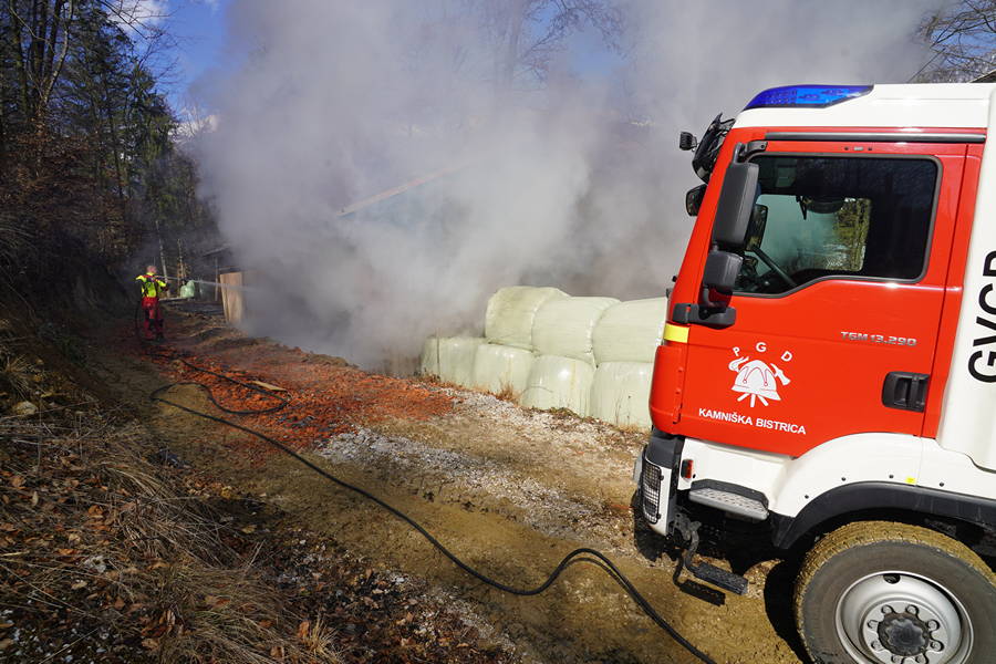 Gasilci so okoli poldneva posredovali v Spodnjih Stranjah, kjer je prišlo do požara lesenega gospodarskega poslopja, v katerem je bila shranjena krma za živino in kmetijska mehanizacija.