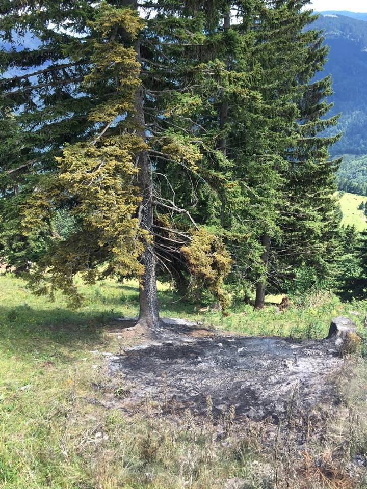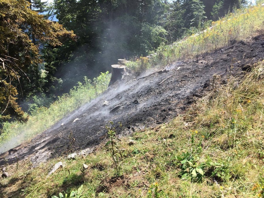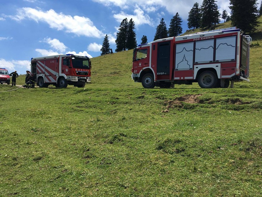 Gasilci so nekaj po 12. uri odhiteli proti Mali planini, kjer sta ob poti med Gojško in Malo planino zagorela drevo in trava.