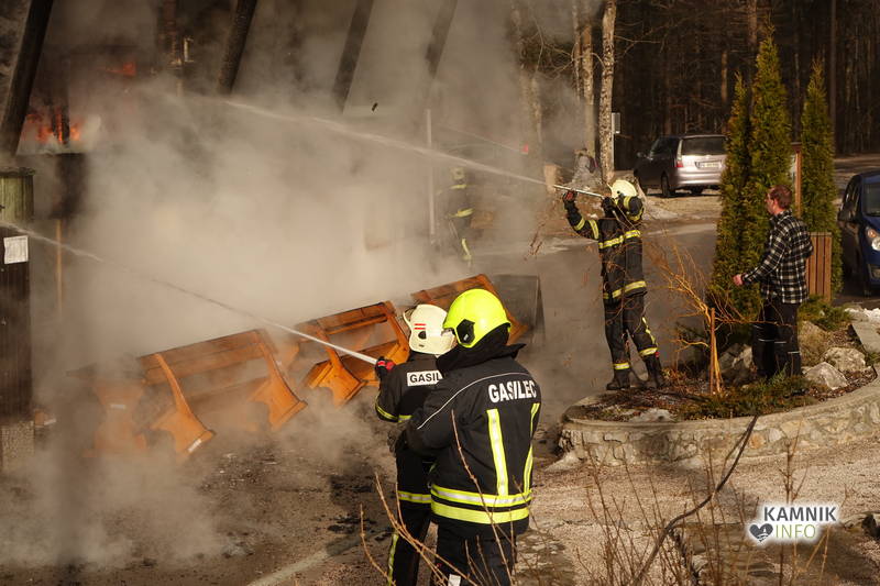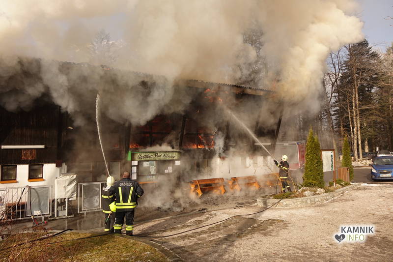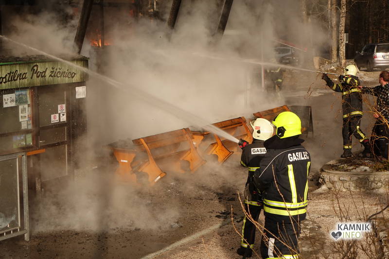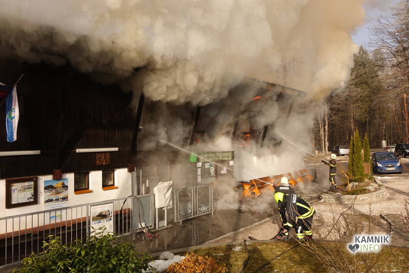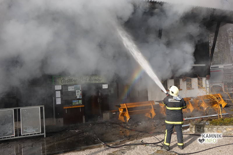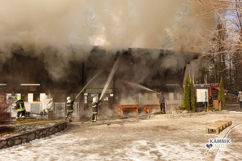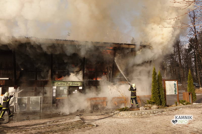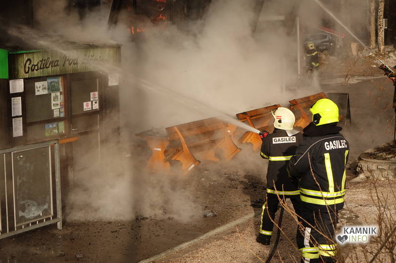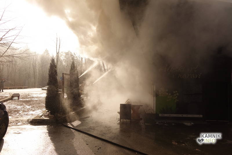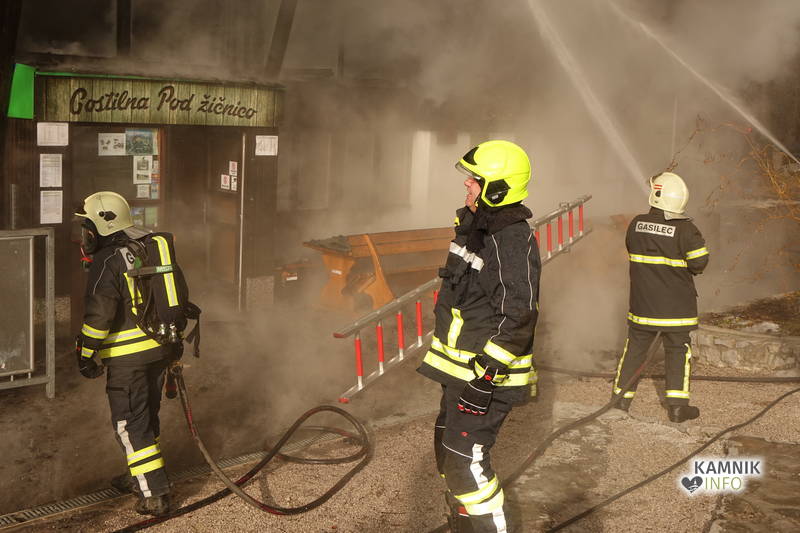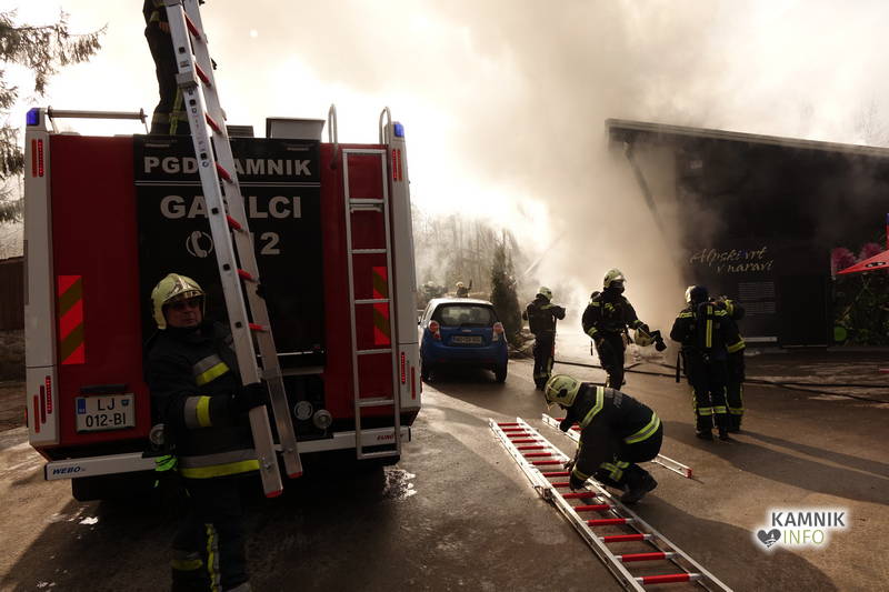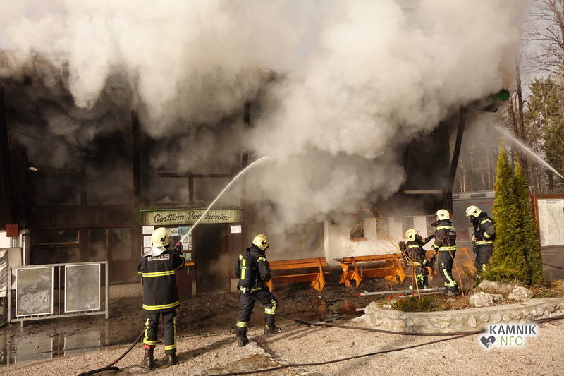 Kljub izjemno hitremu in požrtvovalnemu odzivu gasilcev, prvi so na prizorišče, zgolj nekaj minut po prejemu poziva, prispeli gasilci PGD Kamniška Bistrica, ki so se nemudoma lotili gašenja, vendar je ogenj zajel domala že celotno ostrešje nedavno prenovljenega lokala, nadaljnje širjenje ognja pa so gasilci uspeli omejiti šele potem, ko so na pomoč, prav tako izjemno hitro, z več vozili prišli še gasilci PGD Kamnik in PGD Duplica.