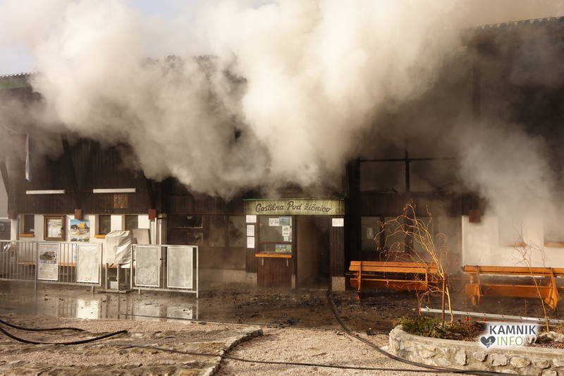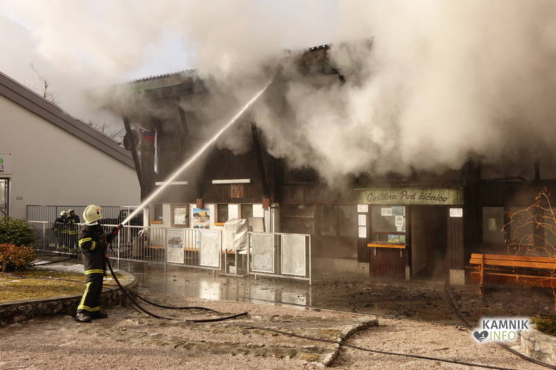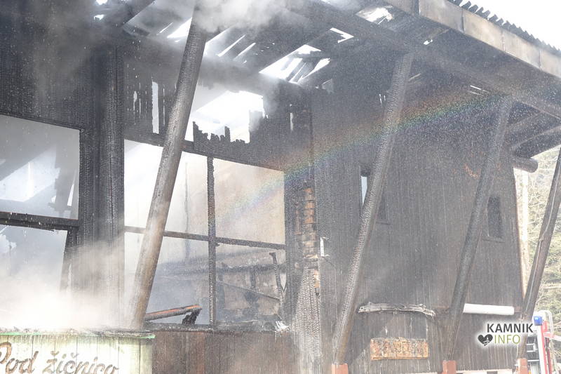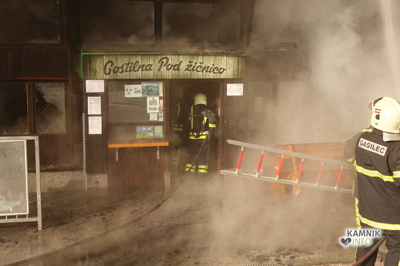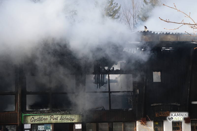 Ognjeni zublji, ki so nekaj minut pred 10. uro dopoldne na spodnji postaji nihalke na Veliko planino zajeli gostilno Pod žičnico, so naredili veliko škodo, saj je gostilna na spodnji postaji bržkone povsem uničena. K sreči v nenadnem požaru ni bil nihče poškodovan, saj so se dopoldanski gostje in zaposleni uspeli še pravočasno umakniti na varno.