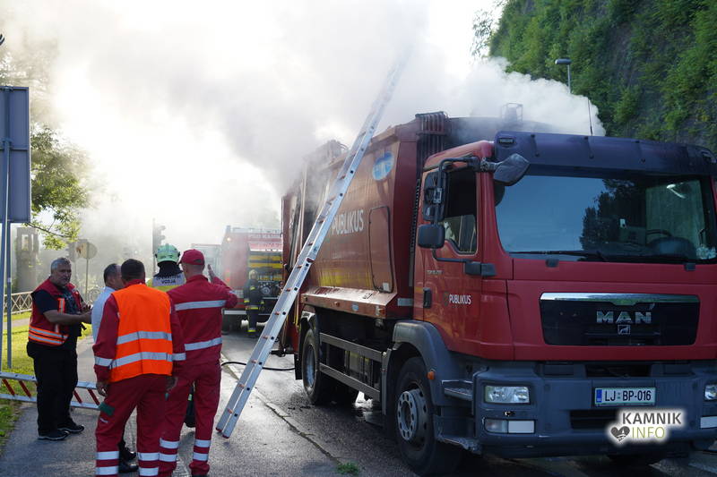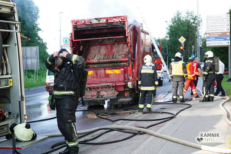Kot smo že poročali je danes zjutraj, nekaj pred pol osmo, med Plečnikovim in Maistrovim mostom na kamniški obvoznici prišlo do požara v tovornem delu tovornjaka za zbiranje in prevoz odpadkov podjetja Publicus.
