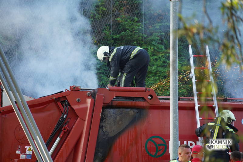 Na kraju požara, ki so ga, še pred prihodom gasilcev, začeli gasiti že voznik tovornjaka in tudi delavci bližnjega Komunalnega podjetja Kamnik, ki so v začetni zmedi pomagali urejati tudi promet, so posredovali gasilci PGD Kamnik, ki pa so lahko požar dokončno pogasili šele potem, ko so se, s kar nekaj truda, s pomočjo žage prebili skozi debelo kovinsko streho tovornega dela vozila, ki mu je odpovedala upravljalna hidravlika.