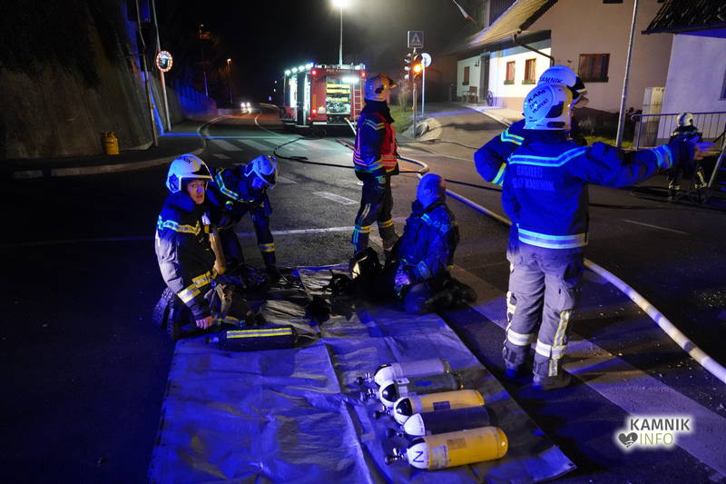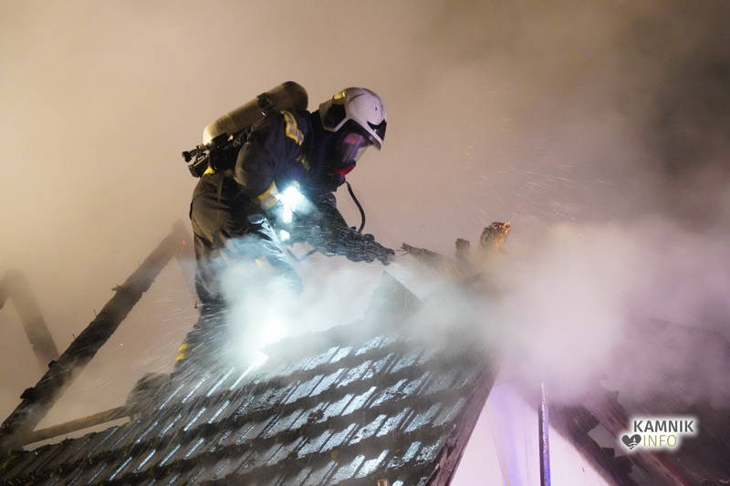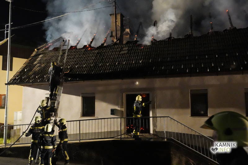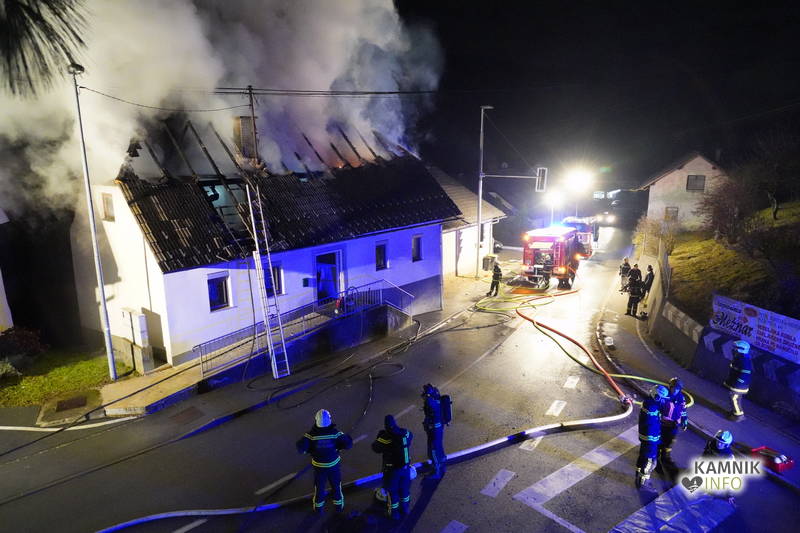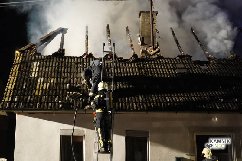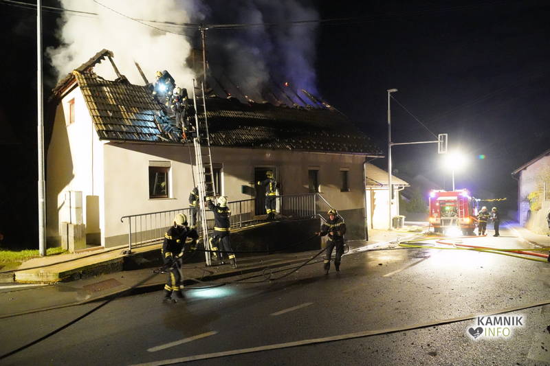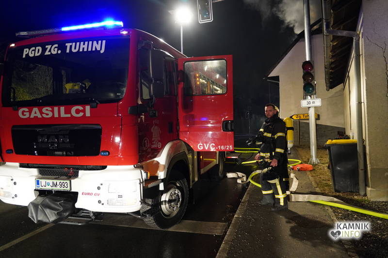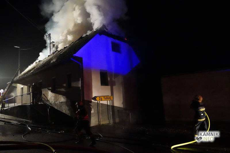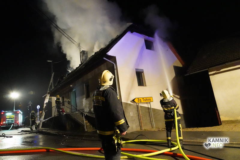 Posredovali so gasilci PGD Zgornji Tuhinj in PGD Kamnik, ki so, kljub zelo hitremu prihodu na prizorišče, naleteli že na povsem razvit požar, saj so ognjeni zublji zajeli ostrešje in celotno zgornje nadstropje starejše stanovanjske hiše, k sreči pa so se vsi prebivalci hiše uspeli pred ognjem še pravočasno umakniti na varno.